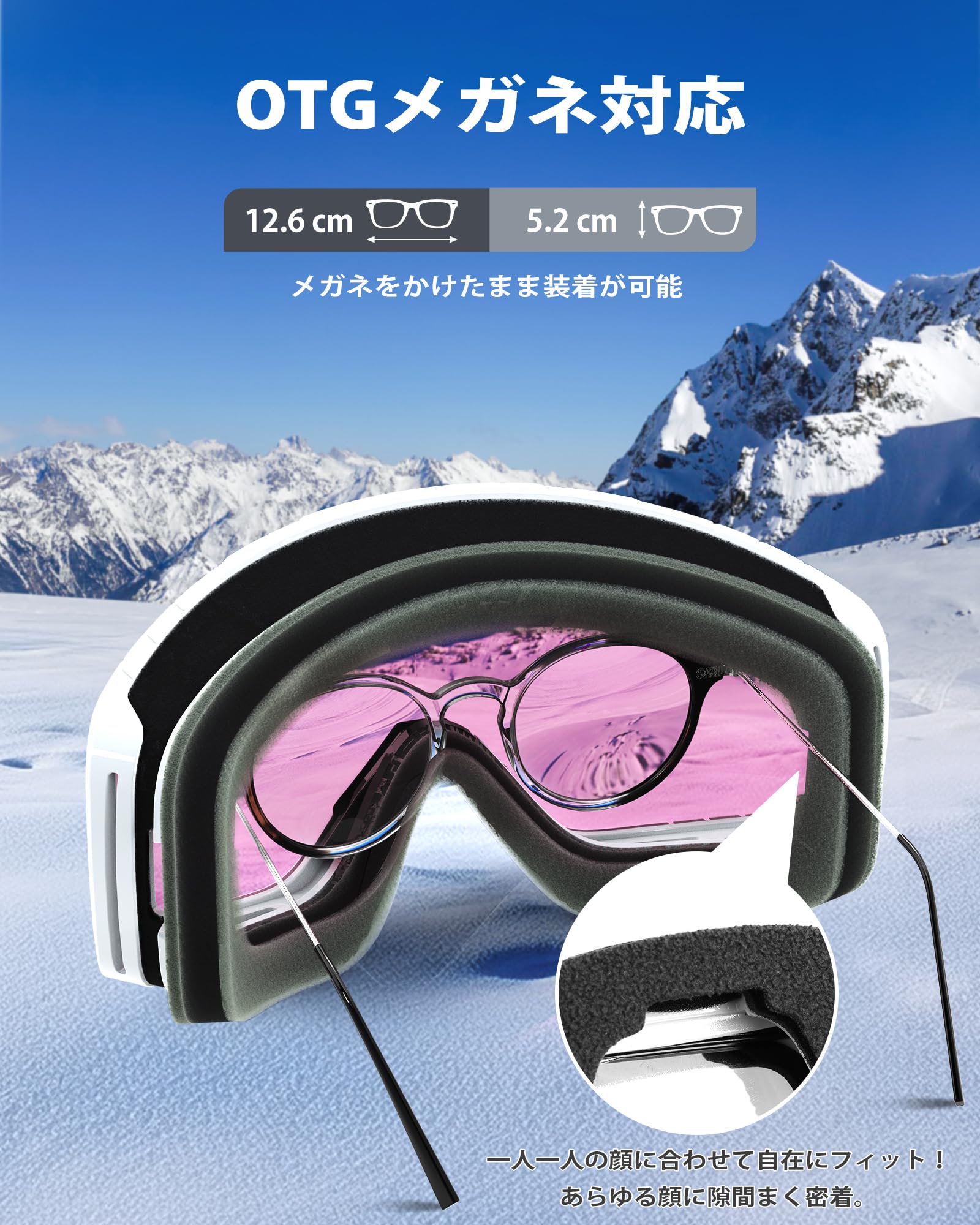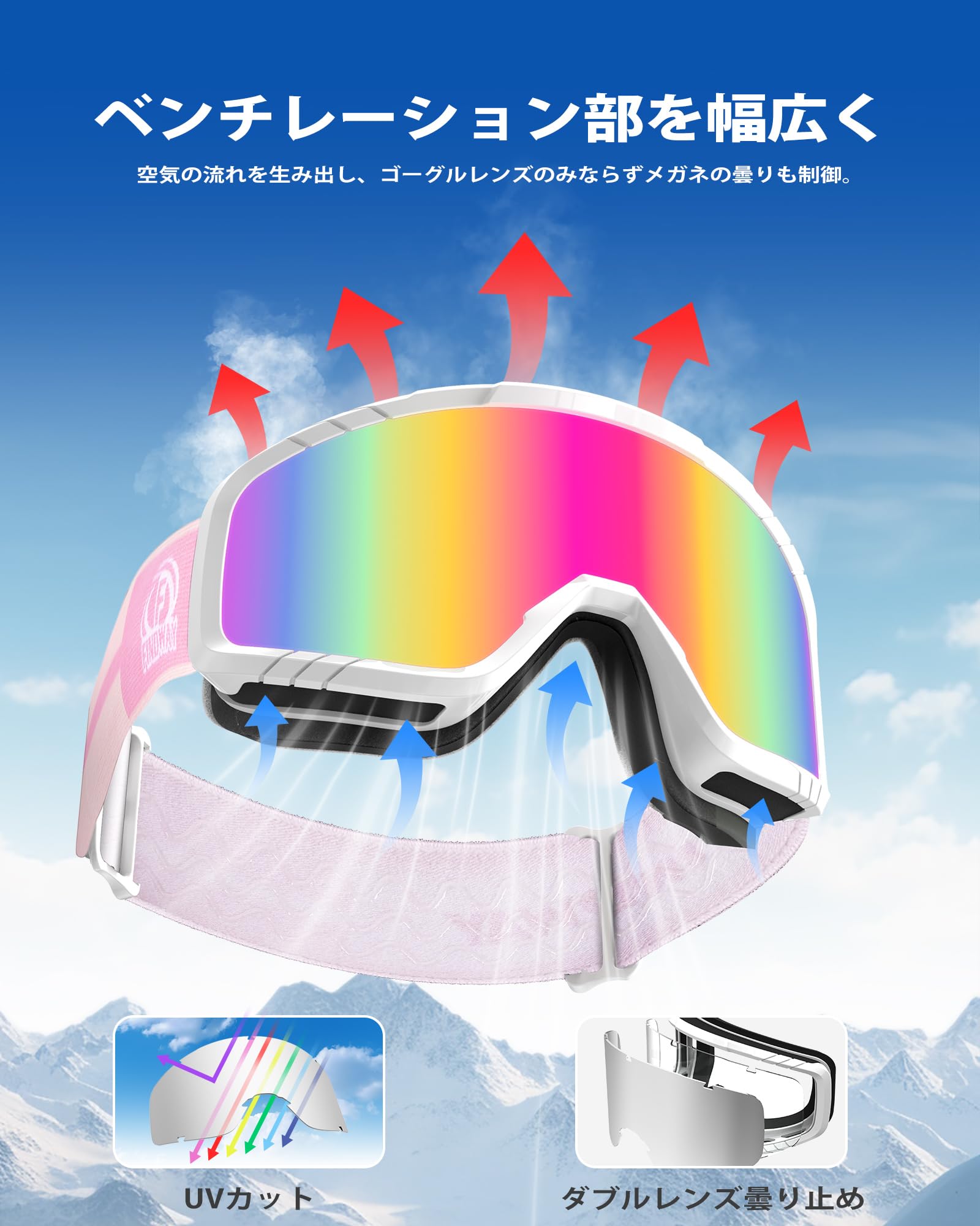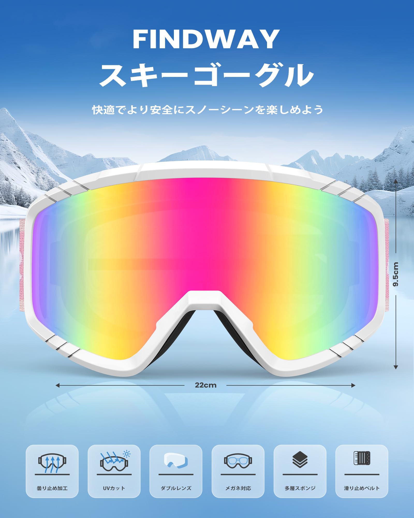 [Findway] スキーゴーグル キッズ スキーゴーグル 大人 スノーゴーグル メンズ スノボ ゴーグル 眼鏡対応 スノーボードゴーグル OTG 広視野 防風/防雪/曇り止め UVカット ヘルメット対応 軽量と耐衝撃