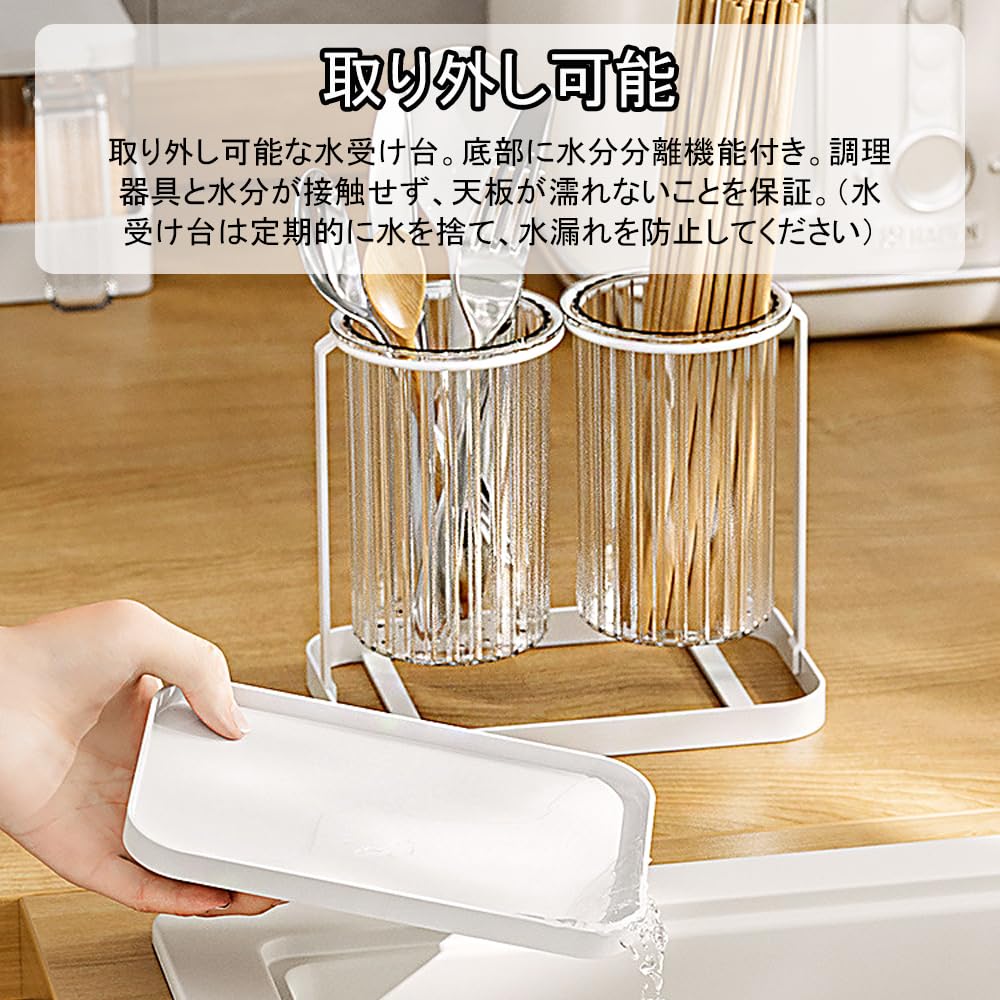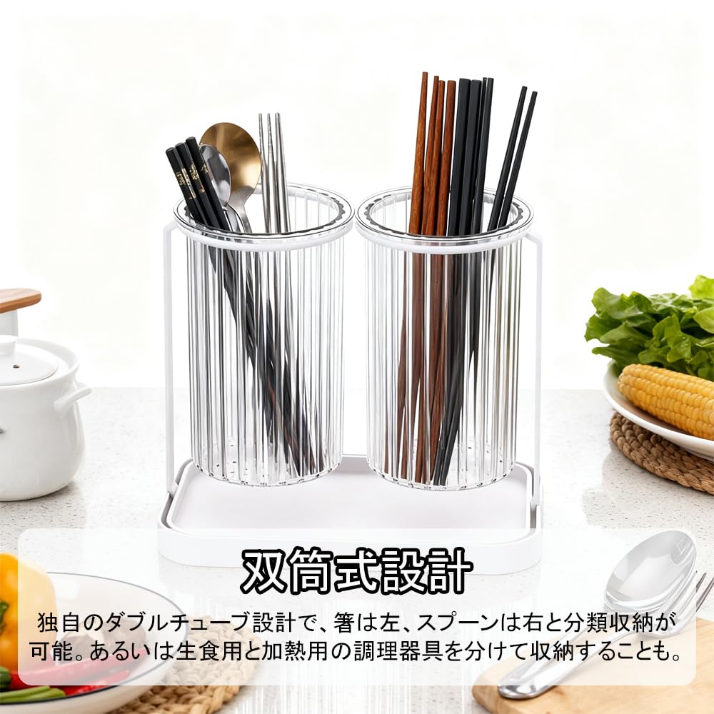 DFsucces 箸立て ダブル 箸水切り プラスチック製 ツール立て キッチン箸立て カトラリー スタンド 箸/フォーク収納 キッチン用品 透明