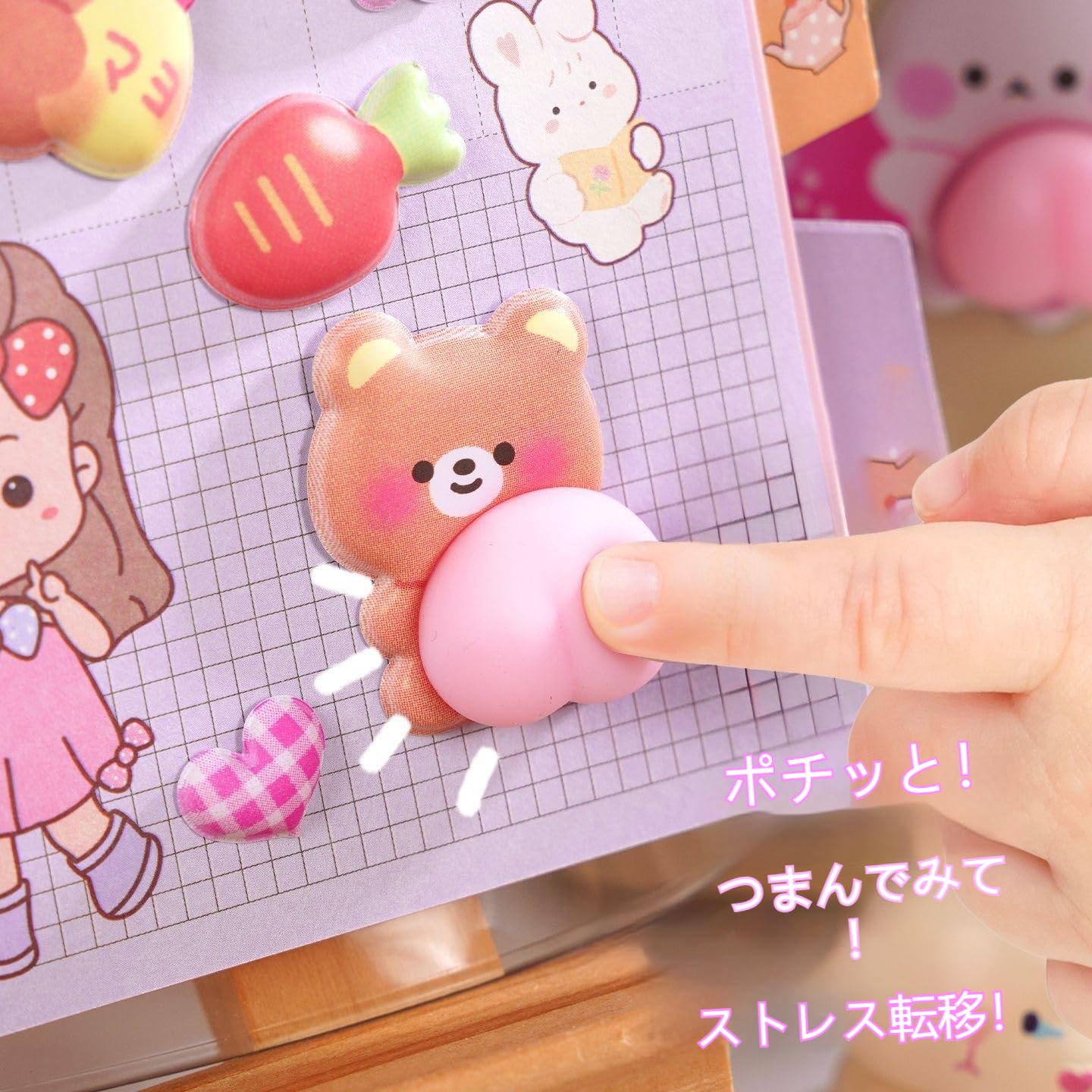 Chaojibao 2枚 おしりシール ぷにぷに 3D立体ステッカー かわいい スマホケース飾り用 ポップシール 手帳用ステッカー ごほうび デコシ ール キラキラ 子供 女の子 DIY用 手帳・水筒・スマホケース・アルバム飾り用 (ピンクブルー)