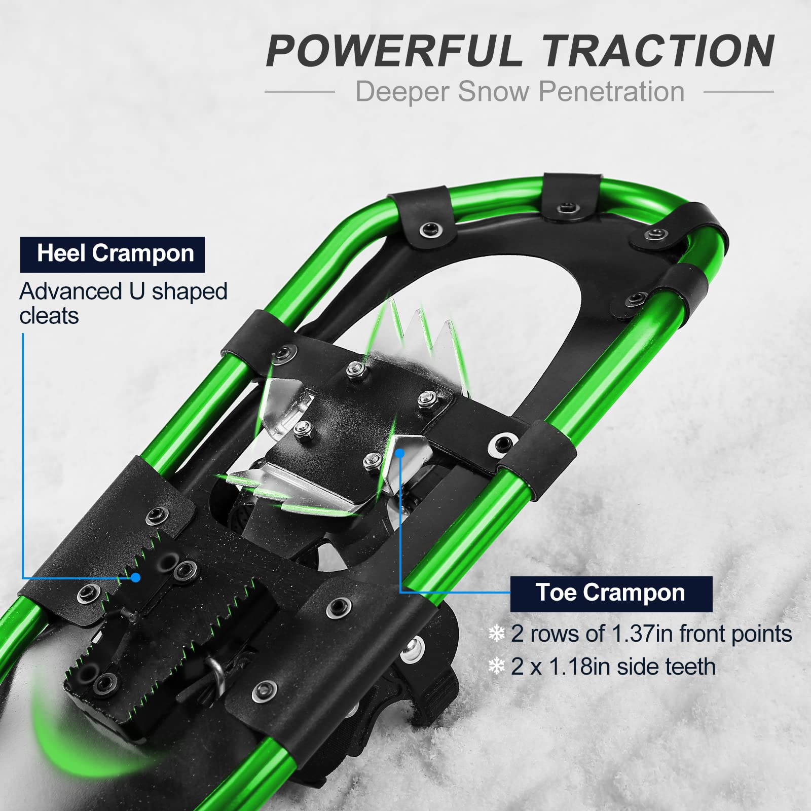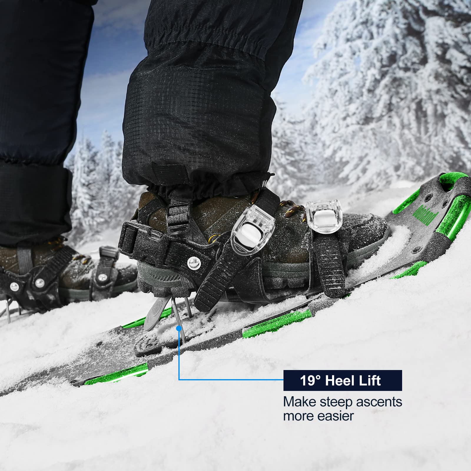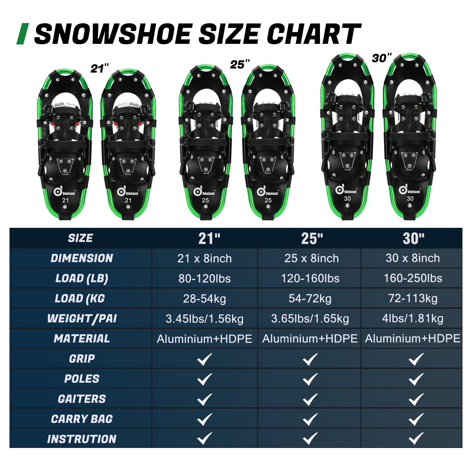 Odoland 4-In-1軽量スノーシューセット アルミスノーシュー トレッキングポール 防水スノーゲイター 雪山 登山 かんじき ワカン 収納袋付き 男女兼用 着装簡単