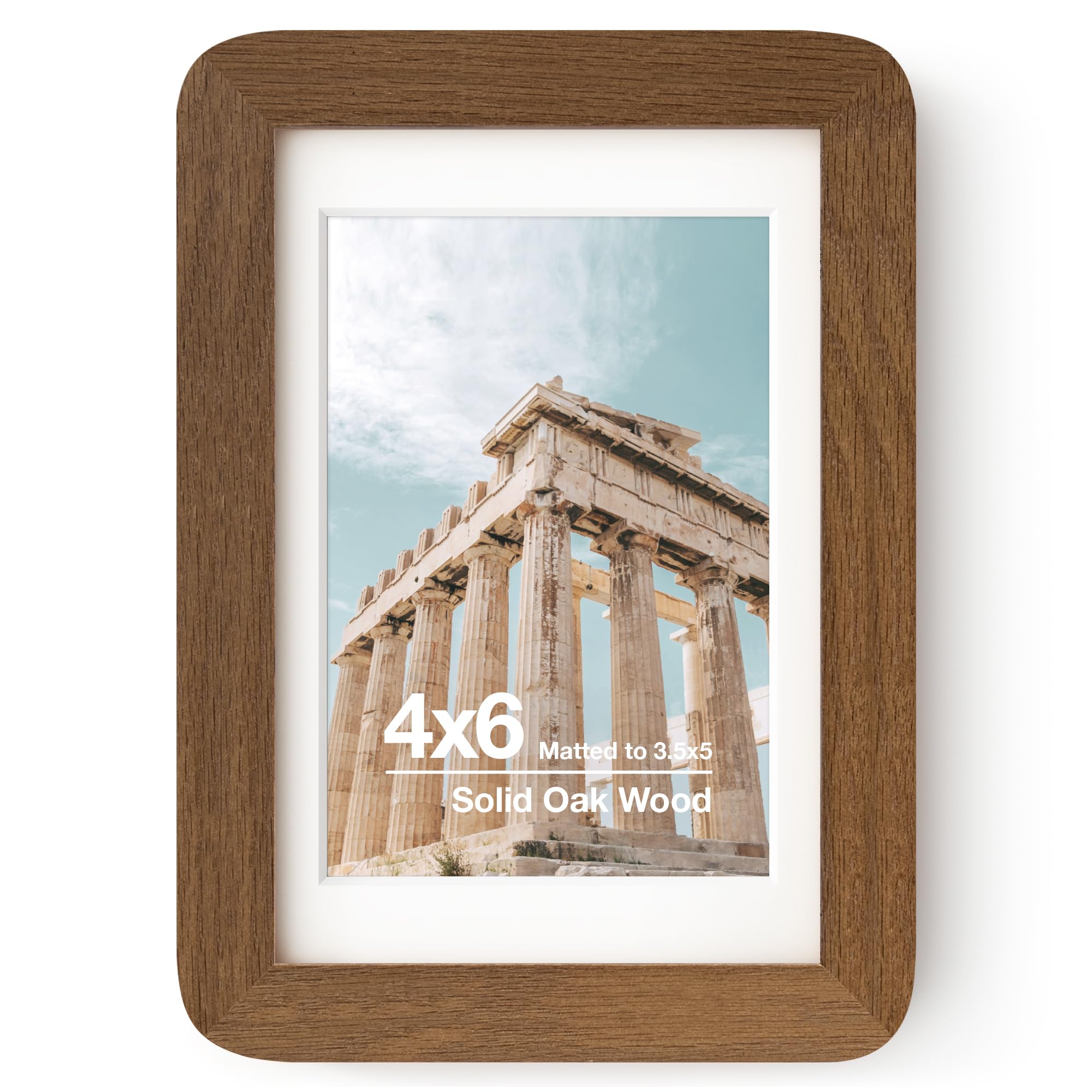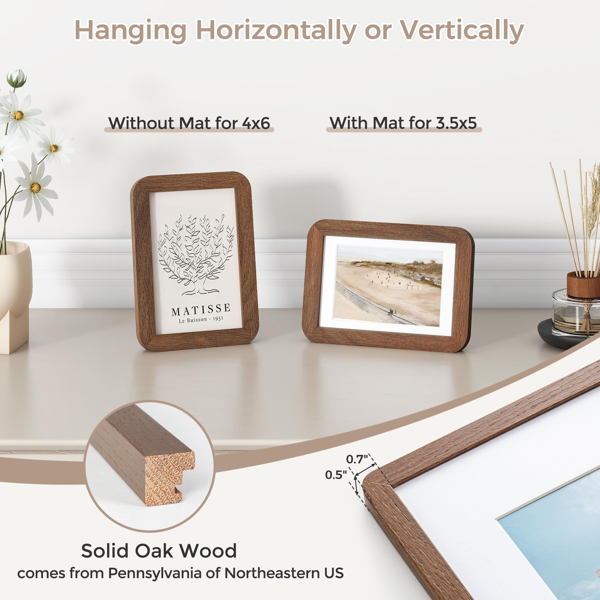 オーク無垢材 フォトフレーム 4x6インチ(七五の三写真対応)マット・プレキシガラス・吊り下げ金具一式付属 ウォールナット色