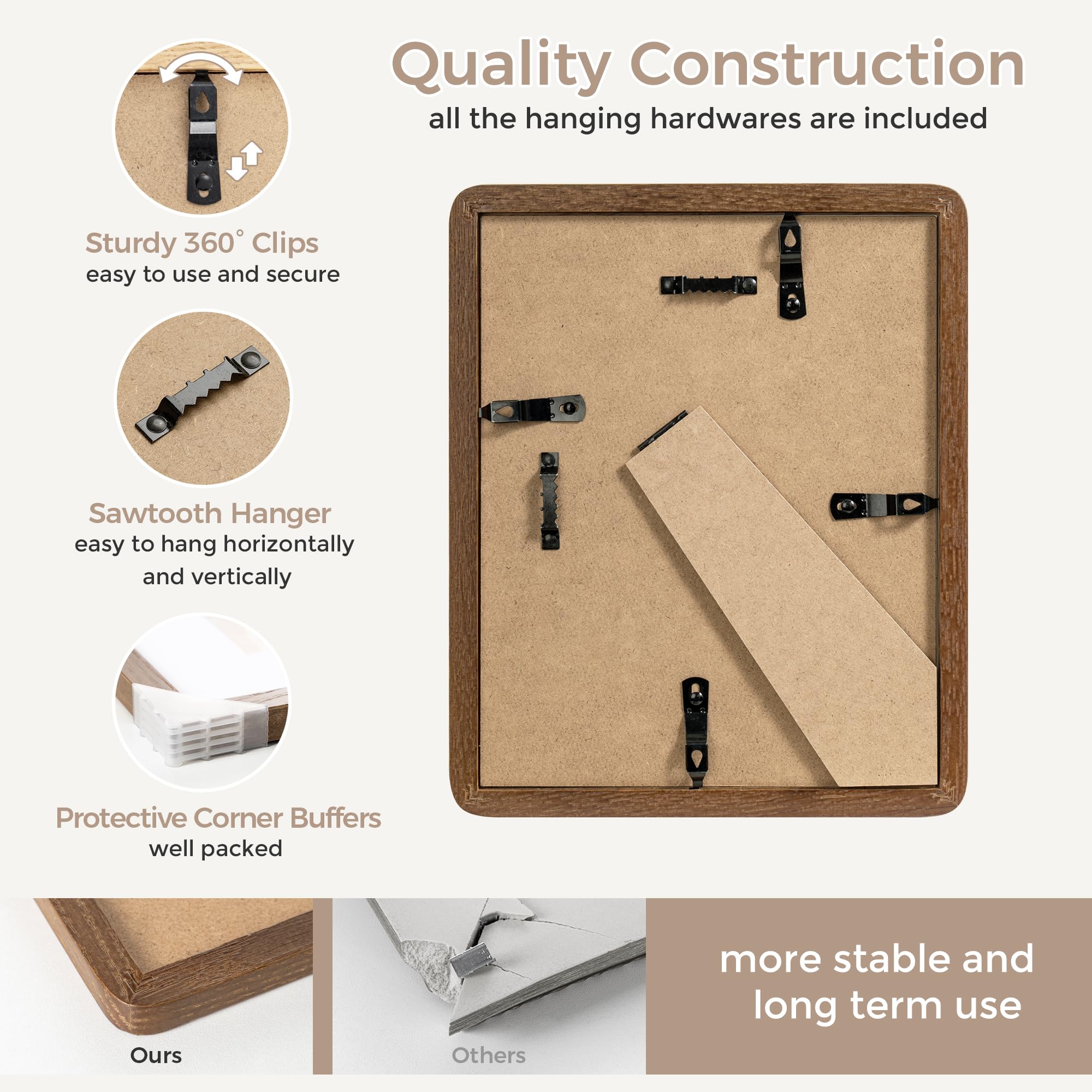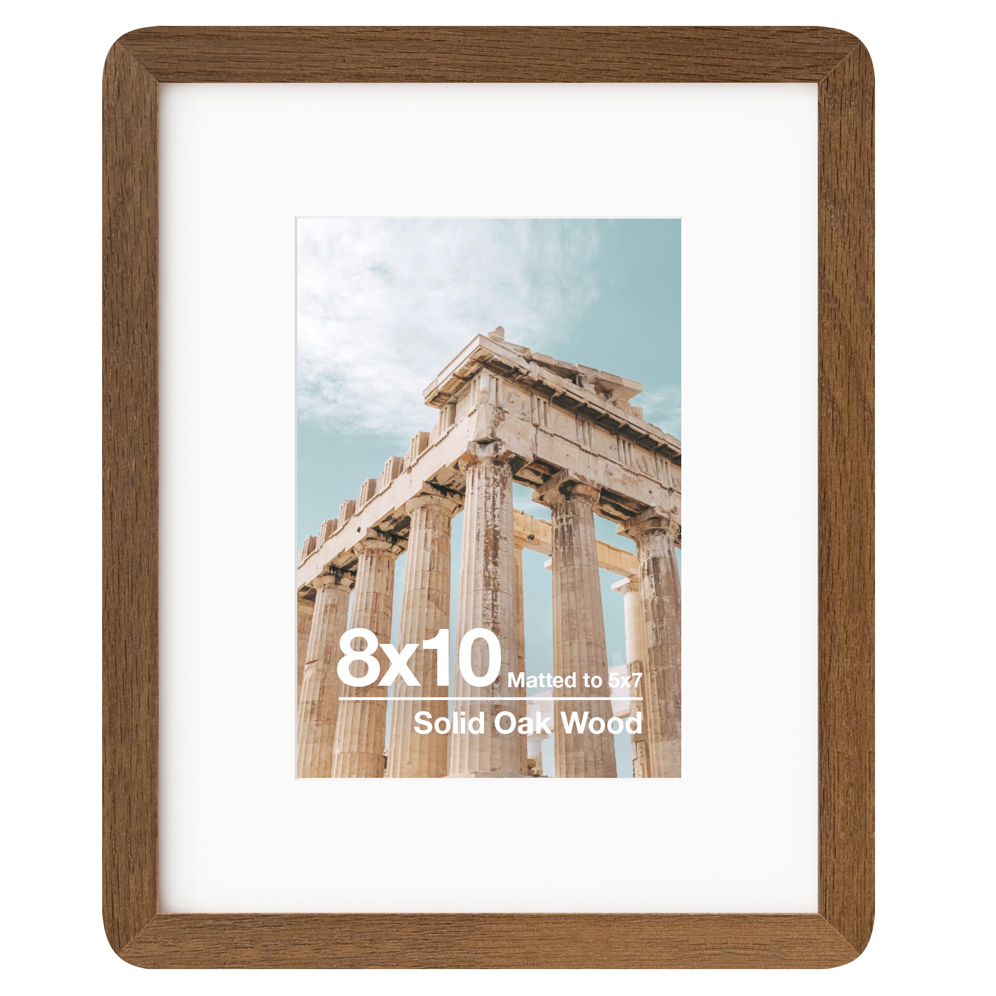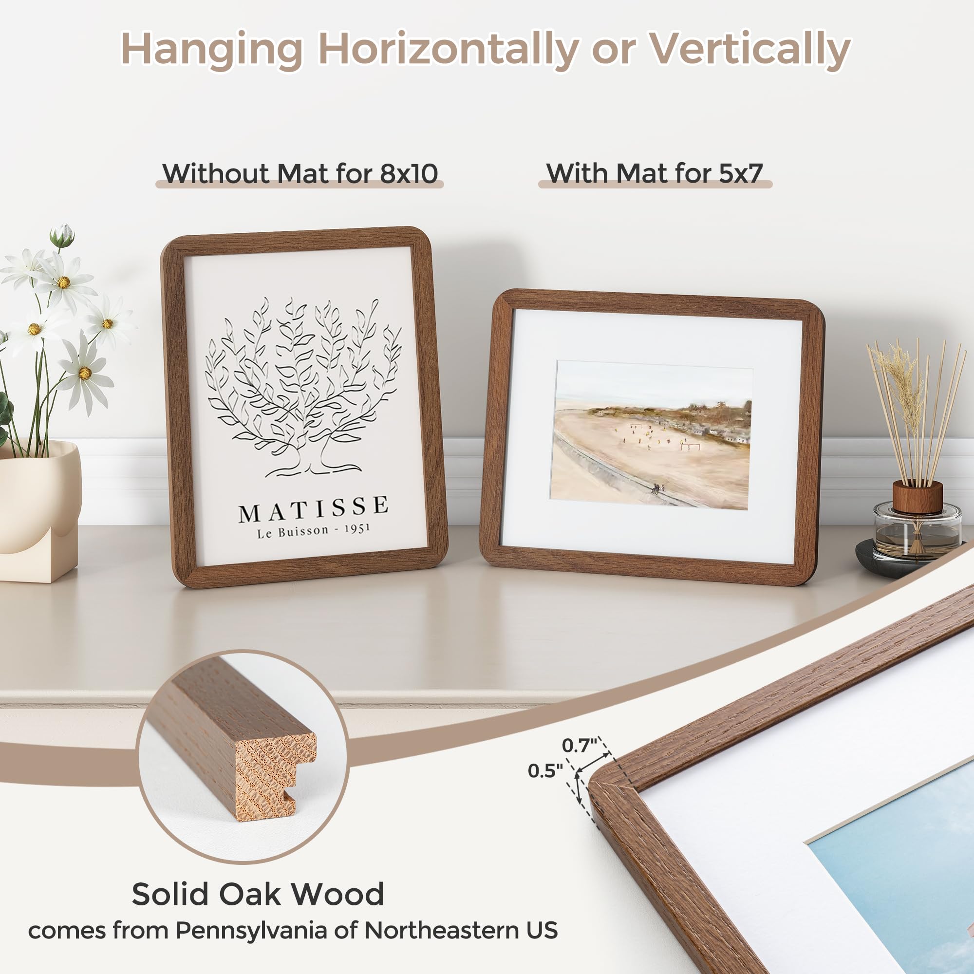 8x10インチ オーク無垢材 フォトフレーム 5x7インチ写真用マット・アクリル板・吊り下げ金具一式付属 ウォールナット (1個)