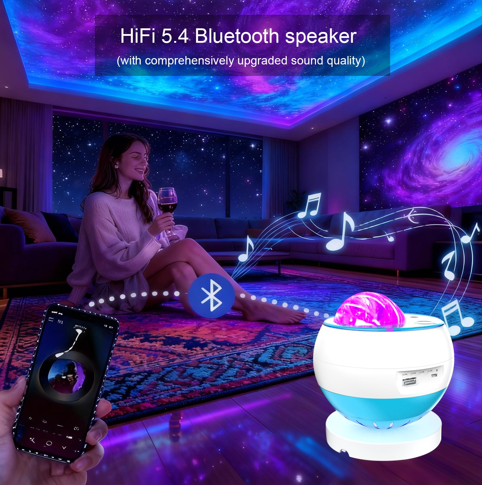 プラネタリウム 家庭用 スタープロジェクター ギャラクシーライト 星空ライト LEDナイトライト Bluetooth&USBメモリー音楽再生 多色変換 室内インテリアライト ベッドサイドランプ 星座・月・天体投影 ホームシアター/寝室/リビングルーム装飾 子供 恋人 癒しグッズ 誕生日 プレゼント (ホワイト)