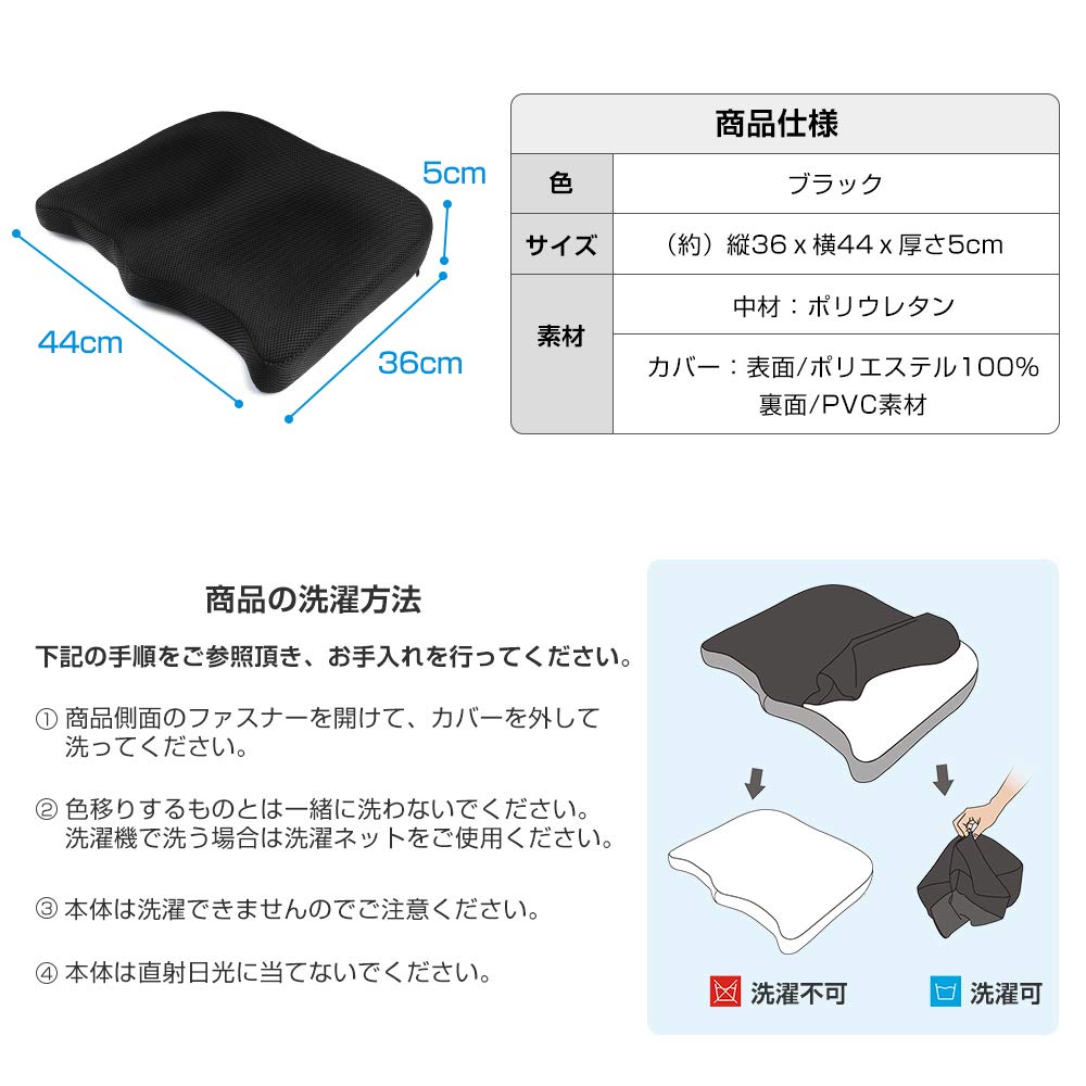 IKSTAR 座布団 低反発 クッション オフィス 椅子 車用 自宅用 プレゼント RoHS基準クリア 座り心地 カバー洗える 通気性 シートクッション ブラック