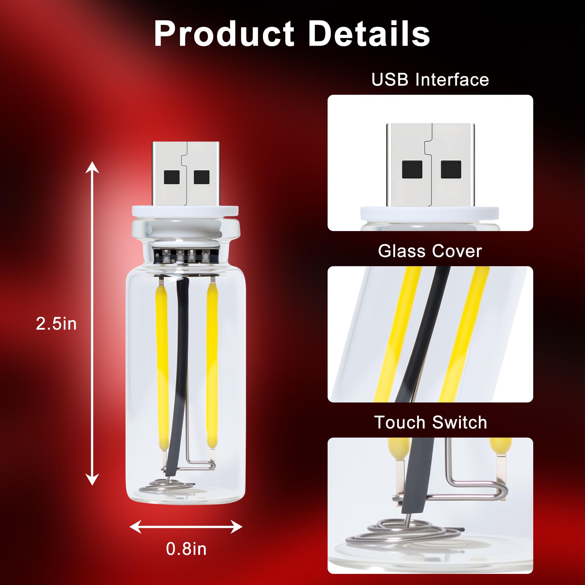 このレトロなUSBカー用ナイトライトは、タッチ調光可能なLEDフィラメントを採用しており、持ち運び可能なミニガラスボトルに収められています。車内、寝室、廊下、キャンプ、休日などでの環境照明に最適です。省エネルギーで使いやすく、どんな空間にもレトロな魅力を加えます。上品なデザインが温かみのある雰囲気を演出します。