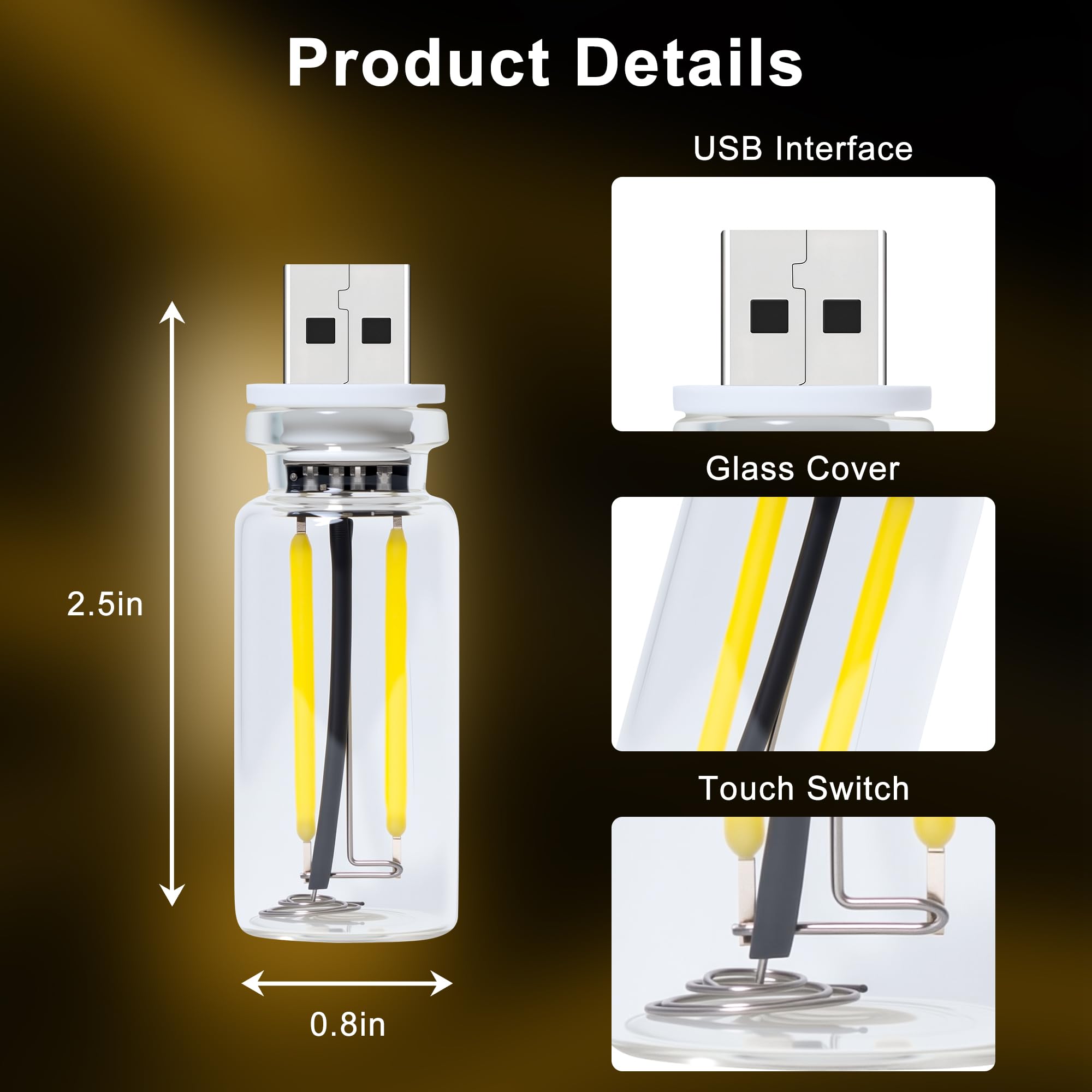 レトロUSB車用ナイトライト、タッチで調光可能なLEDフィラメントライト - 携帯用ミニガラス瓶の環境ライト、車内、寝室、廊下、キャンプやフェスティバルの装飾に最適