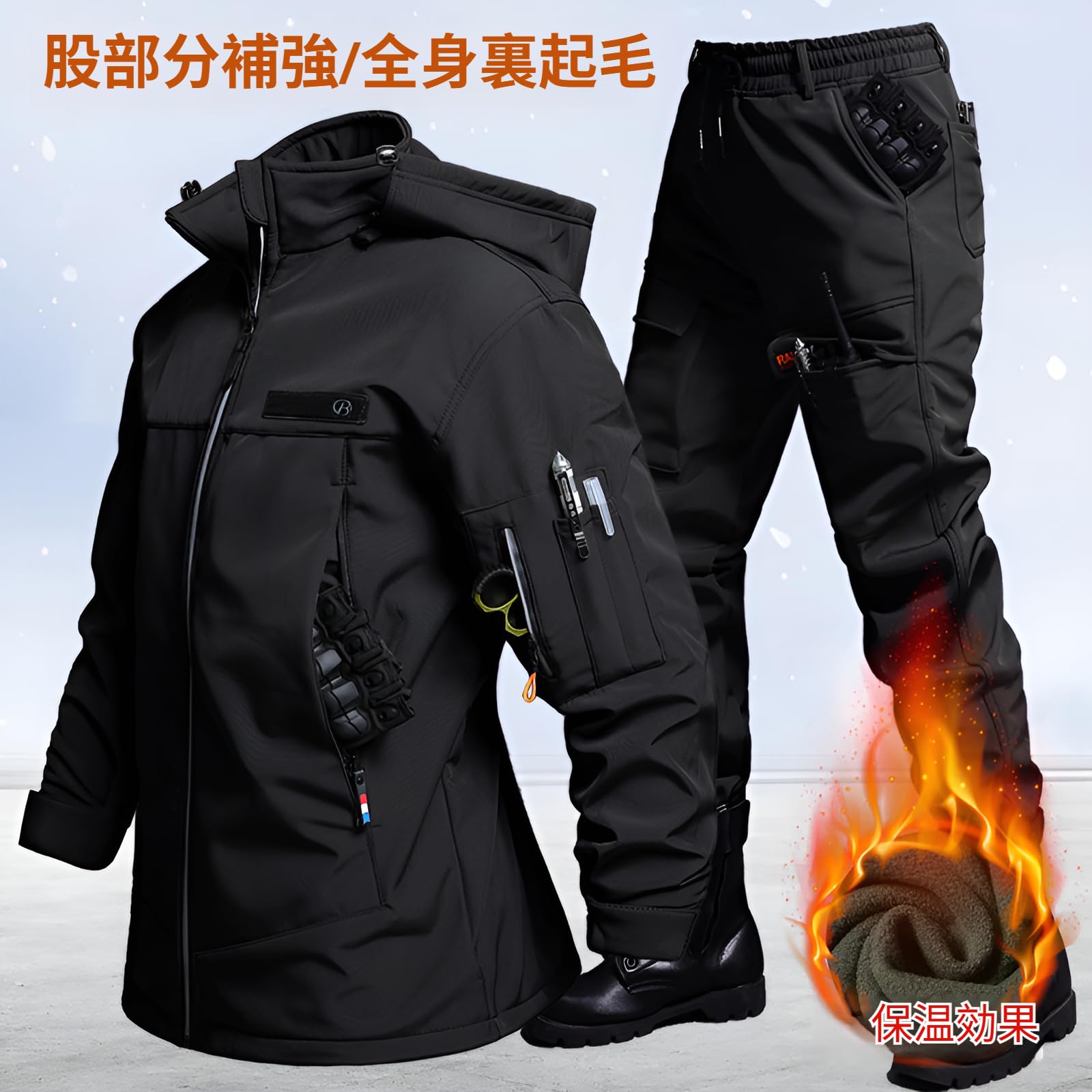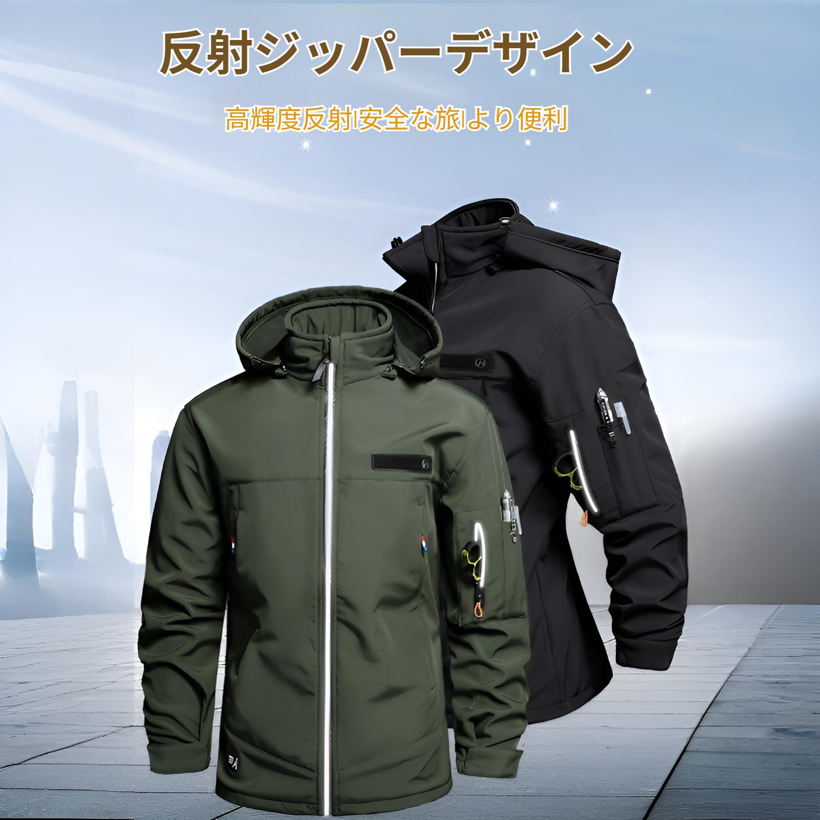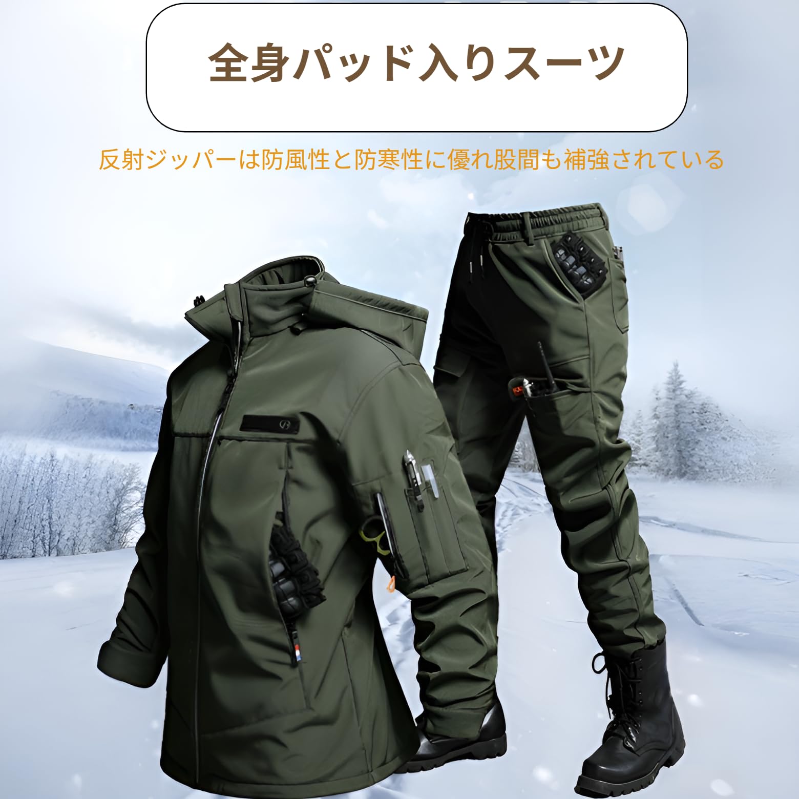 [JUELREOU] アウトドアジャケット 上下セット メンズ 厚手 裏起毛 撥水 防風 防寒着 上下セット 登山ジャケット 多機能 作業着 防寒着 スキーウェア マウンテンパーカー トレッキングパンツ セットアップ
