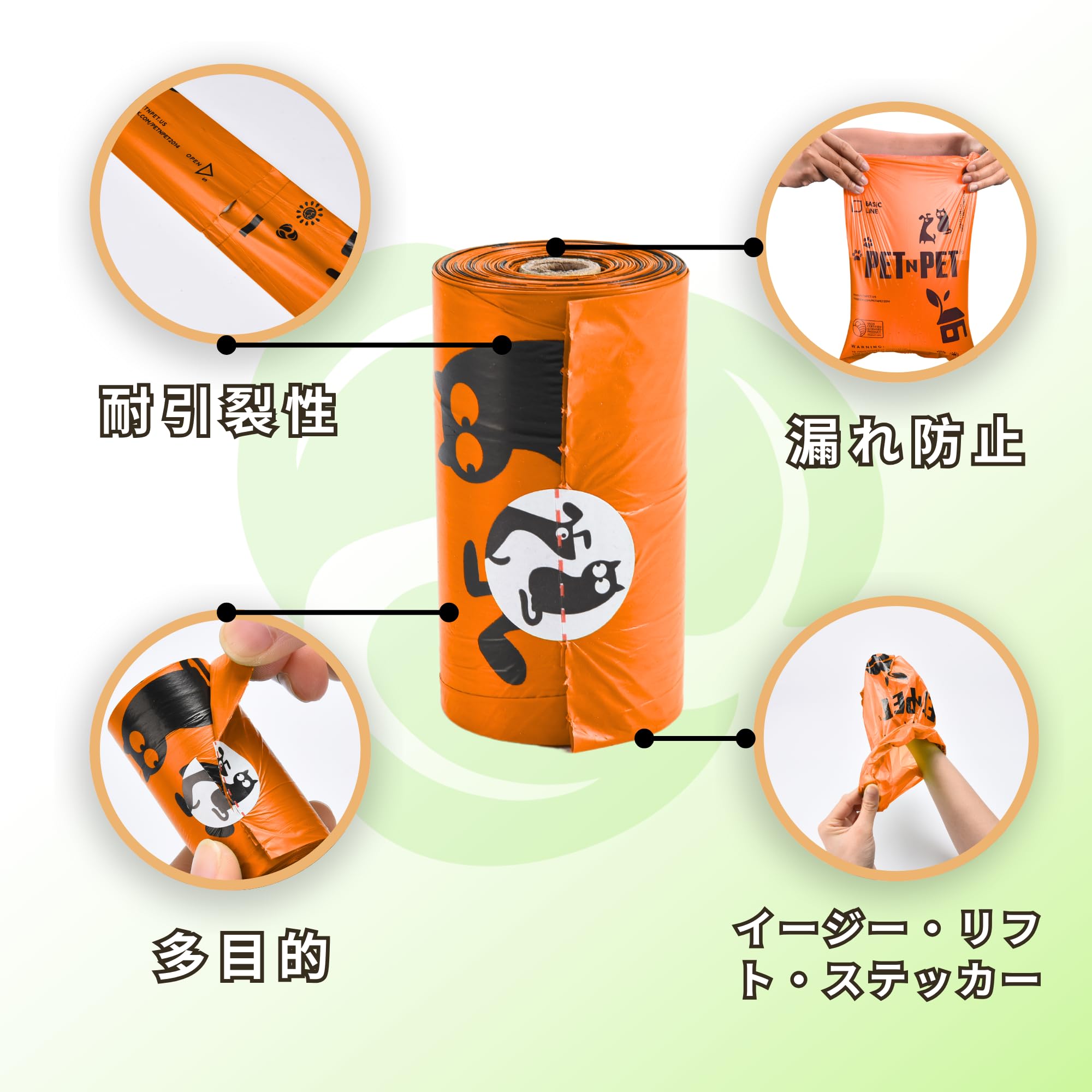 Pet N Pet うんち袋、エチケット袋、60ロール入り1080個、臭わない犬のうんち袋、犬の散歩用猫用トイレ袋、USDA認定 41% 植物由来 & 59% PE、漏れ防止で丈夫