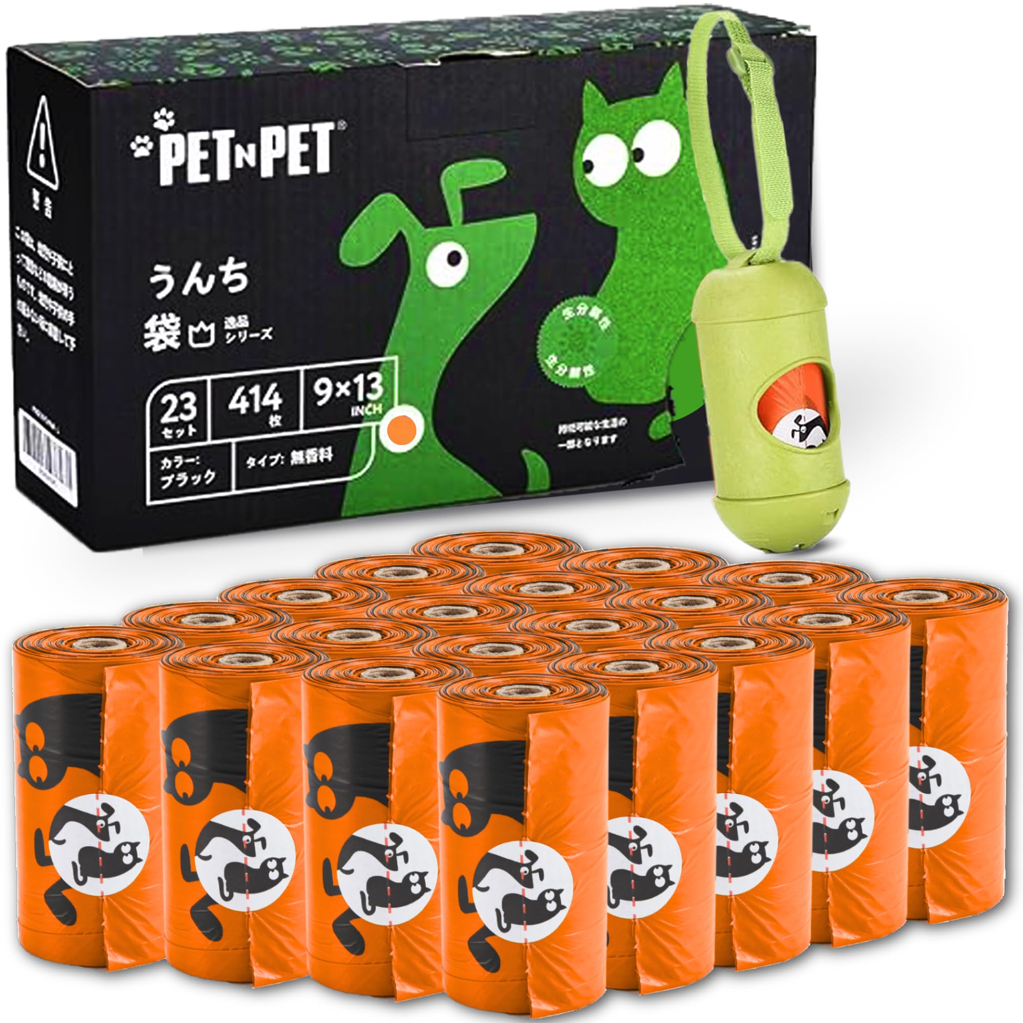 Pet N Pet におわない袋 うんち袋, 臭わない袋, 犬用, 散歩に最適, ペット用品, 414枚入り, ディスペンサー付き, USDA認定, 38%植物由来