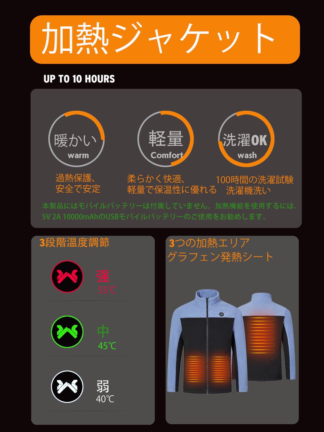 [WESMART] 電熱フリースジャケット メンズ 充電式 加熱インナー 秋冬 保温 柔らかい 防寒ウェア アウトドア 登山 ハイキング キャンプ 日常用