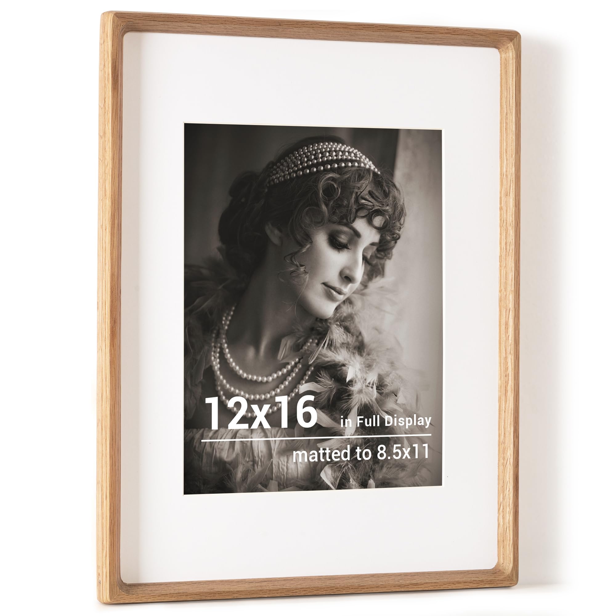 12x16インチ 木製フォトフレーム 8.5x11マット付き 手作り丸角