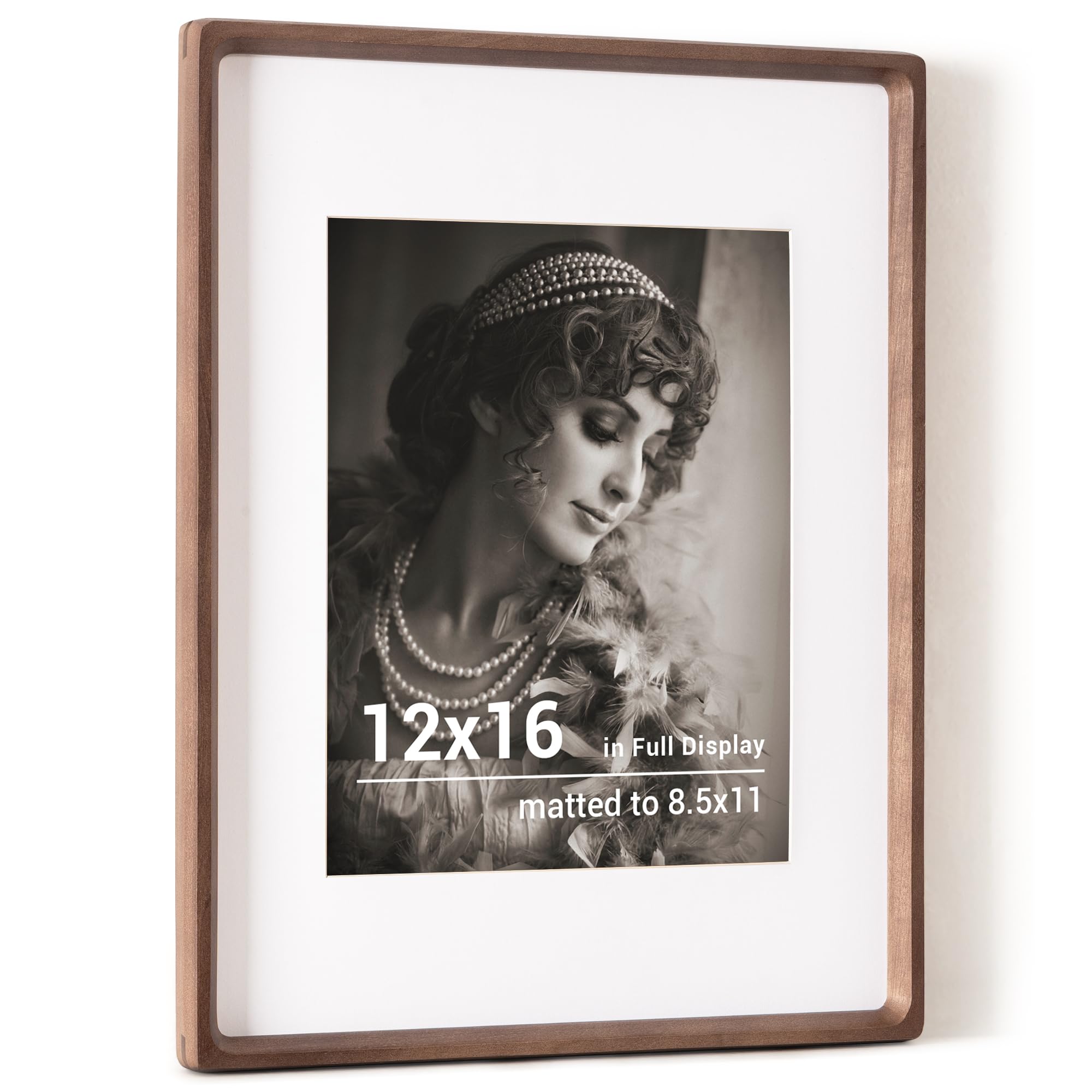 12x16インチ 木製フォトフレーム 8.5x11マット付き 手作り丸角