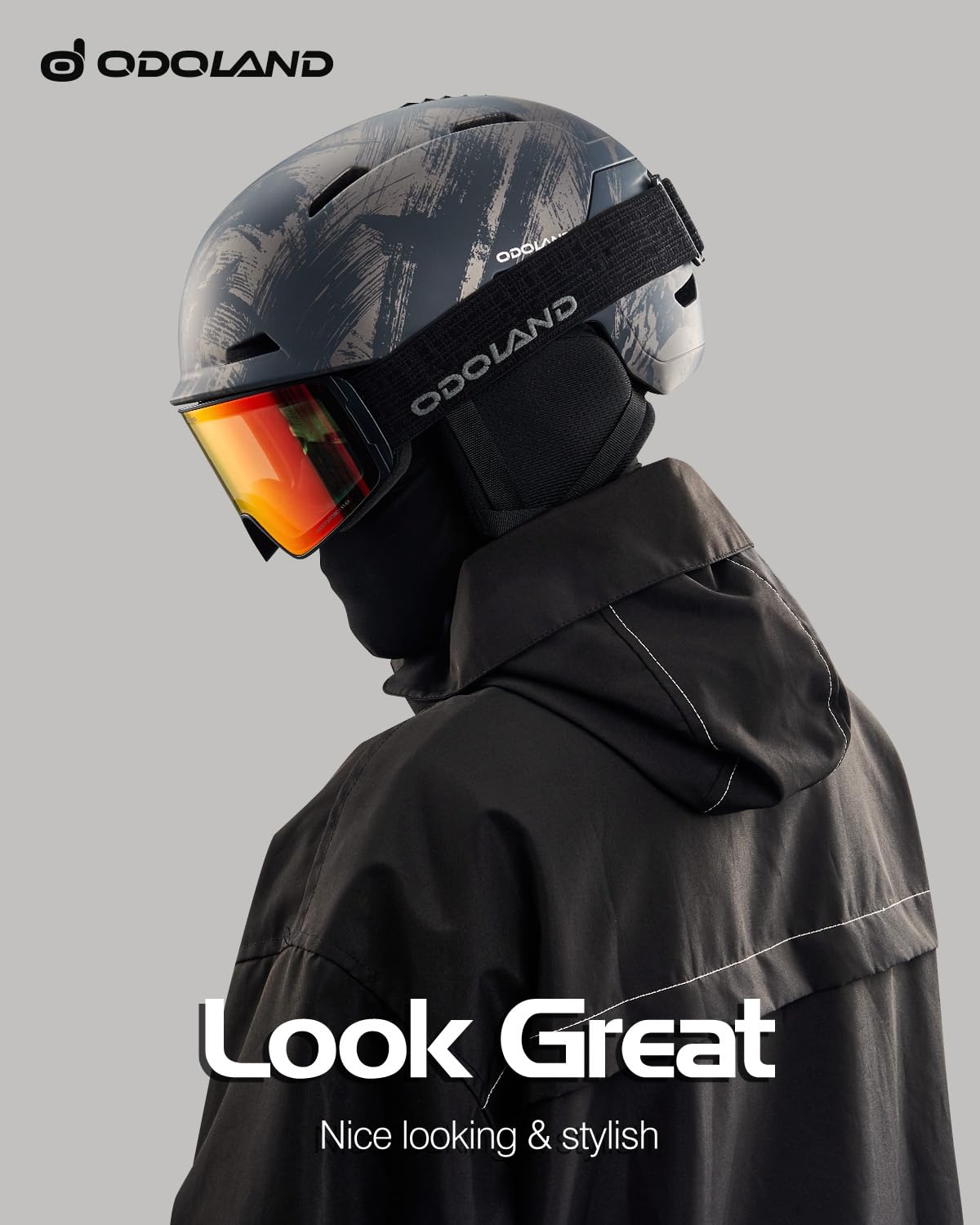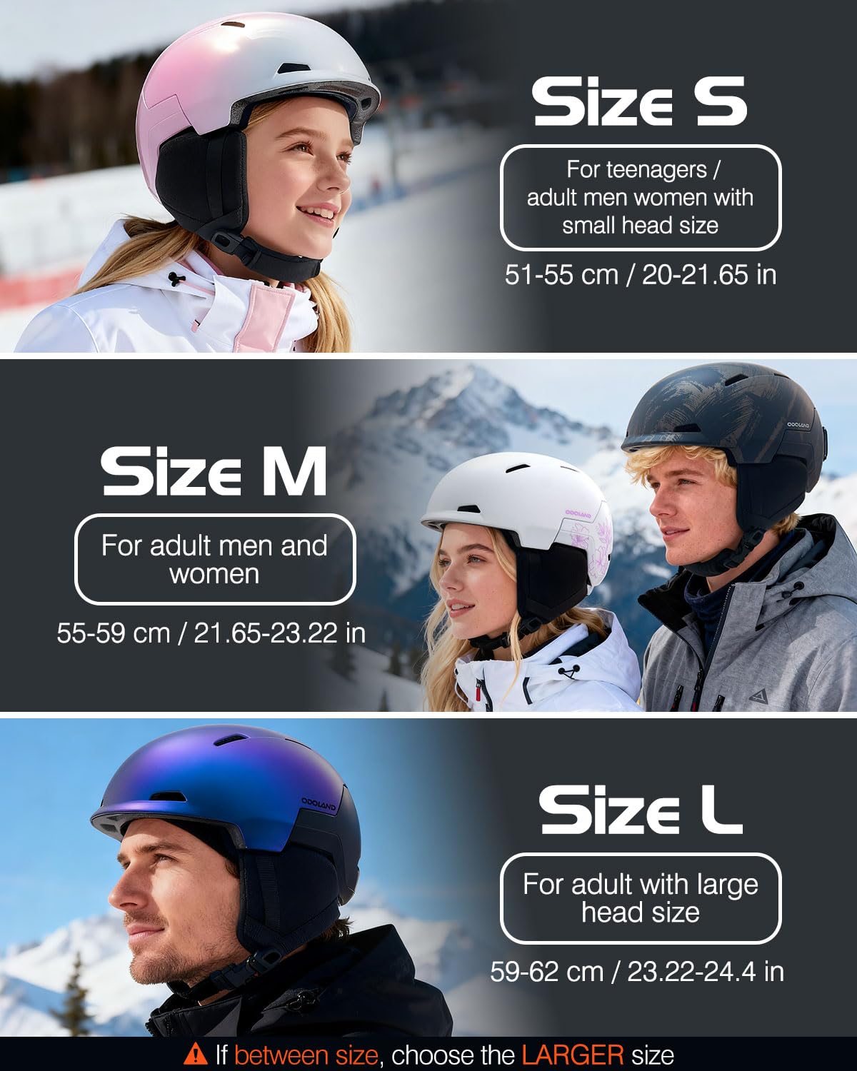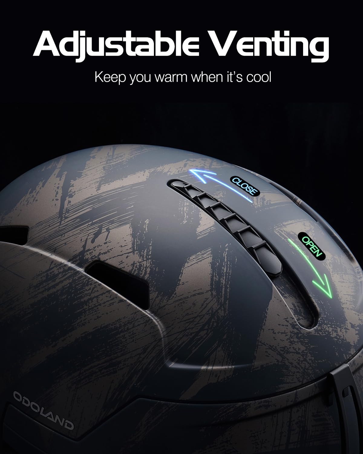 Odoland スキーヘルメット 開閉式ベンチレーション スノーボードヘルメット 安全認証済み ダイヤル式サイズ調整 ゴーグル固定バンド付き ファッション 男女兼用 大人・ジュニア・子供用