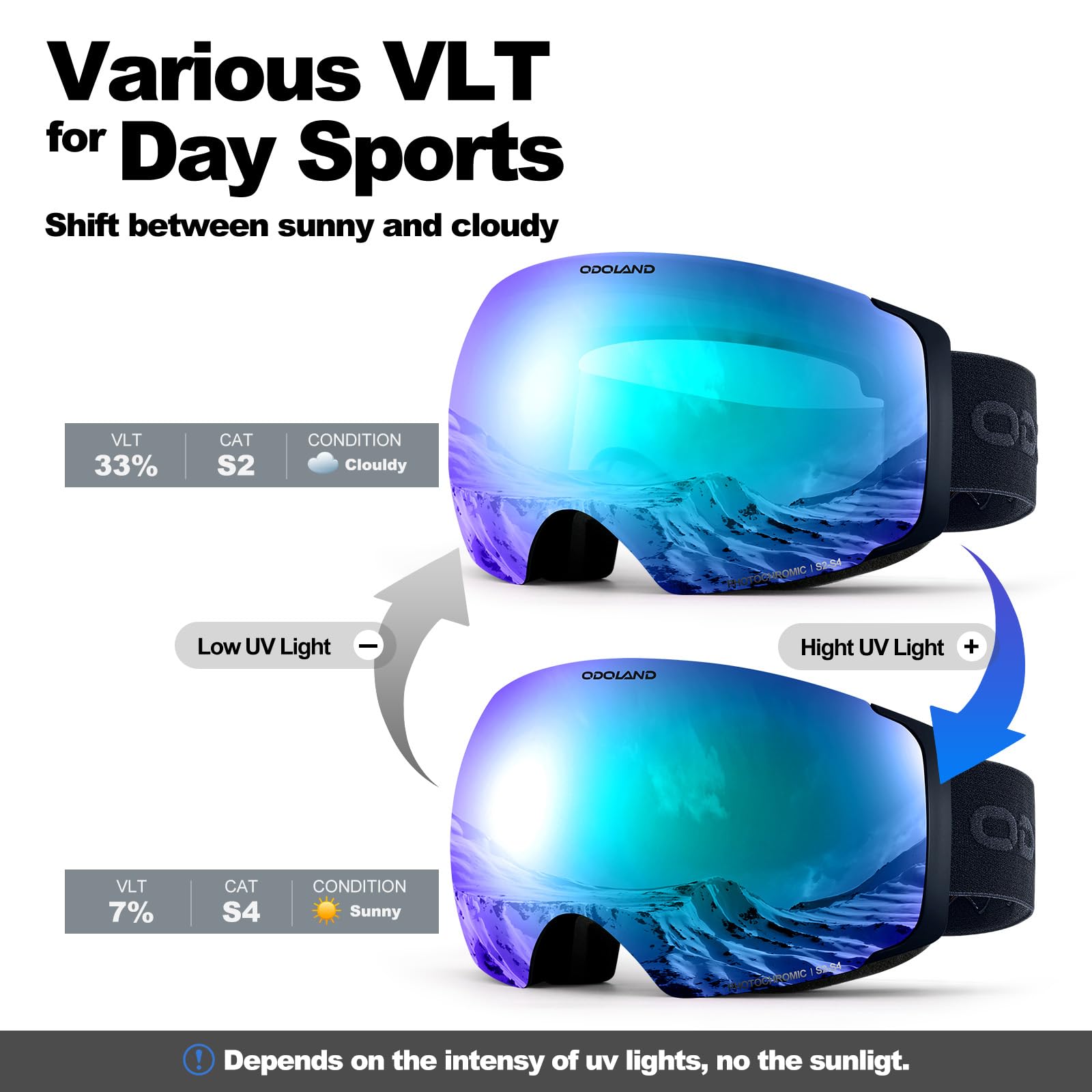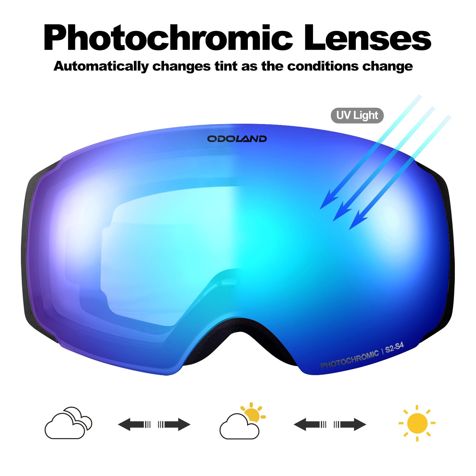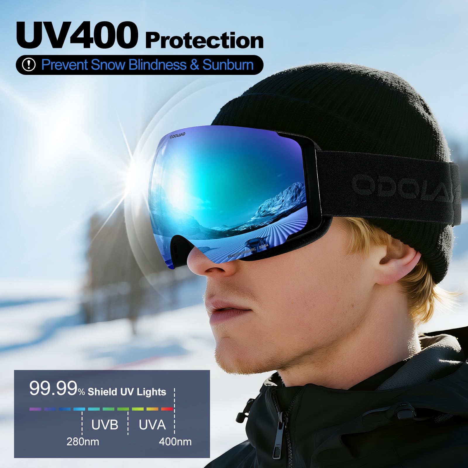 [Odoland] スノーゴーグル + ナイター向きレンズ 磁気レンズ交換式 2層球面レンズ OTGメガネ対応スノーボードゴーグル 曇り止め 超広視野 UV400 通気 防風 防塵 防雪 軽量 耐衝撃 男女兼用