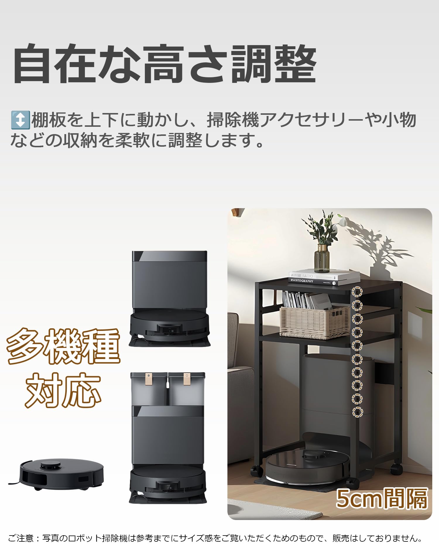 SUOWUKS ロボット掃除機収納ラック 多サイズ対応 お掃除ロボット置き台 高さ調節可能収納ラック サイドテーブル 落下防止 ベッドサイドテーブル キャスター付き 移動便利 空間活用ラック 寝室 リビングルーム ソファ ベッドサイド 室内収納 移動便利 (ホワイト, 幅49CM) [並行輸入品]