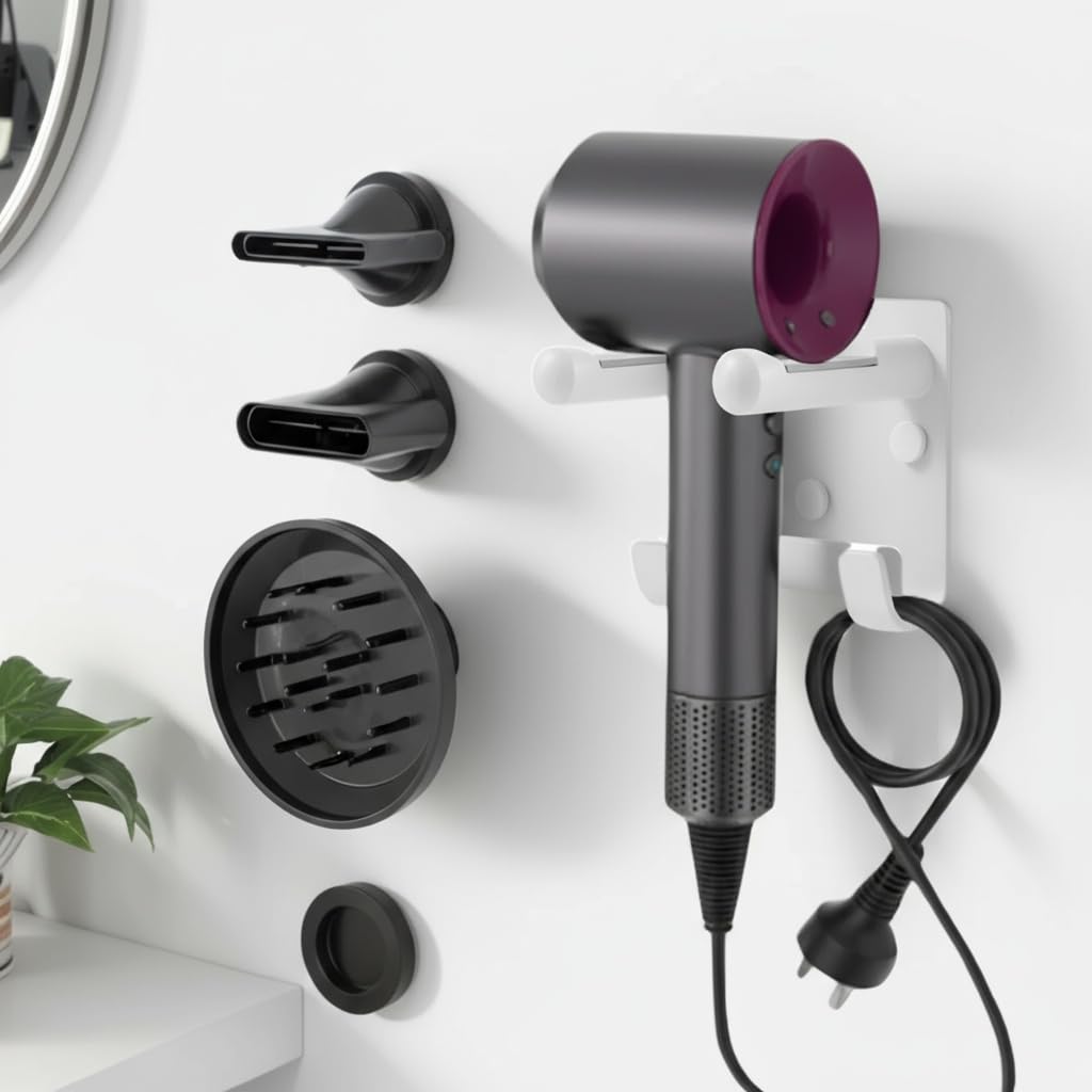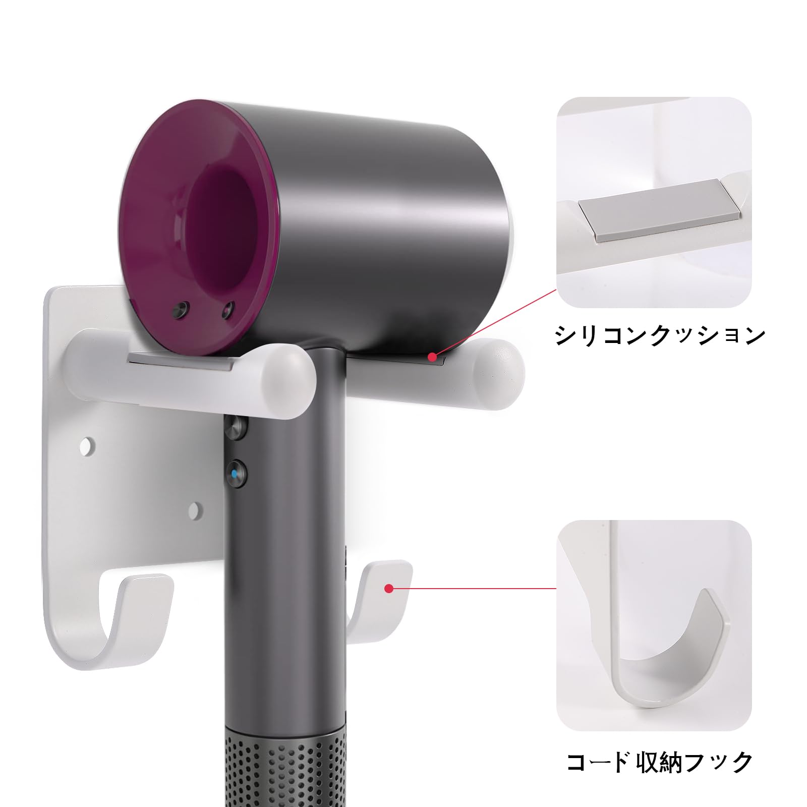 DoocliB ドライヤー スタンド ドライヤーホルダー 壁掛け 強力粘着 ドライヤー置き リファ ドライヤー スタンド 巻き取り 収納 コードもスッキリ収まる(ホワイト)