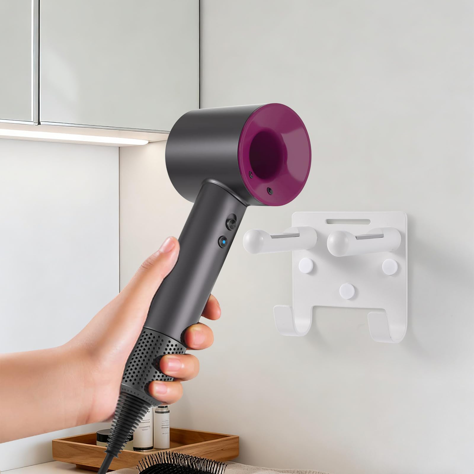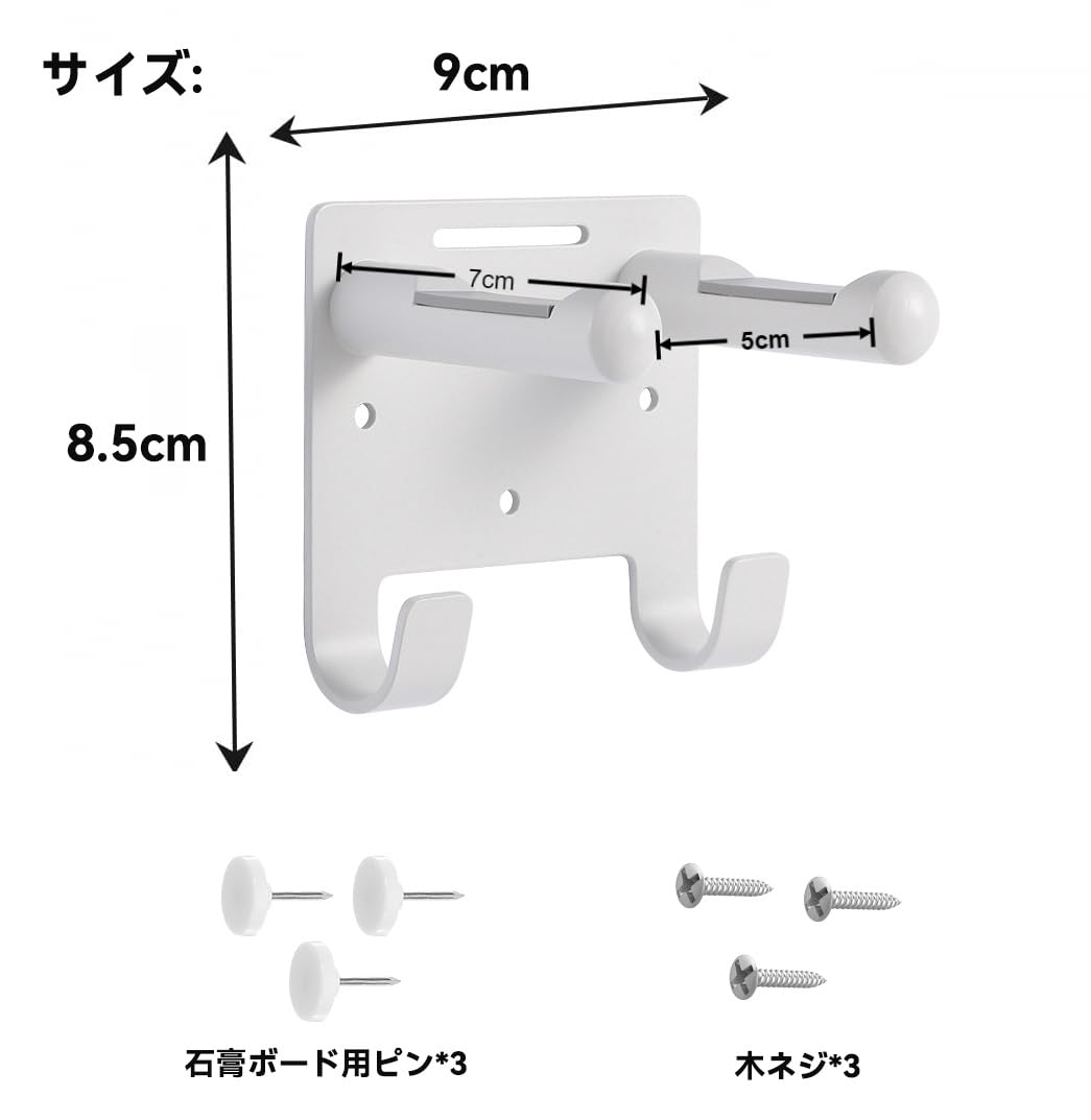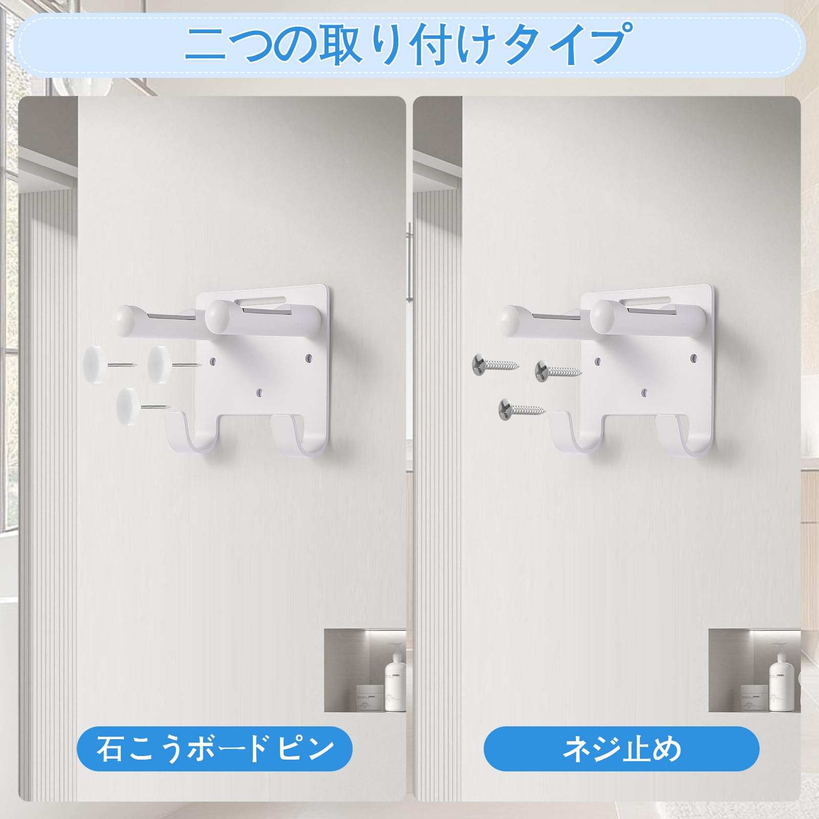 KAIXUANMAN ドライヤーホルダー 石こうボード 壁掛け ドライヤー 収納 ドライヤー置き コード収納 軽量 アルミニウム コンパクト 浴室収納 置物 バス用品 フック付 ホワイト