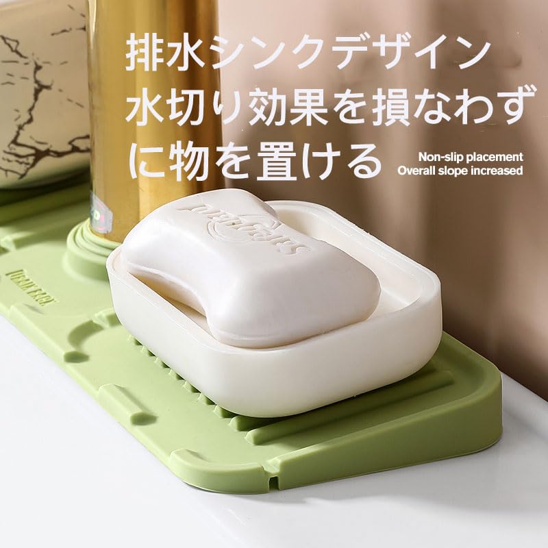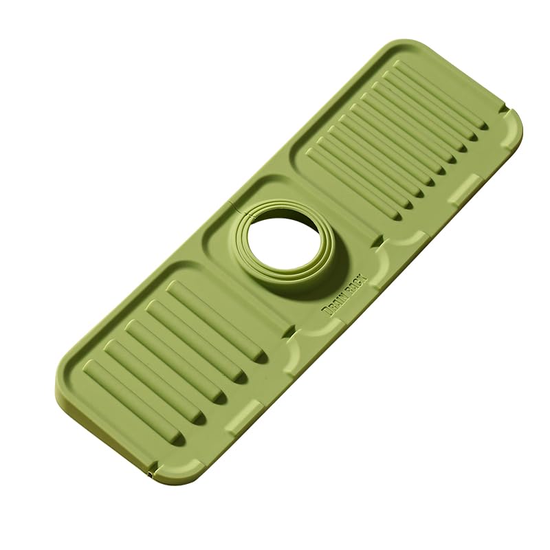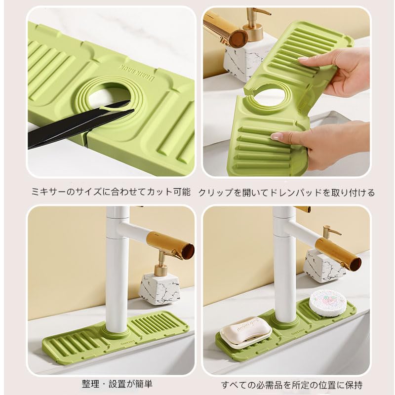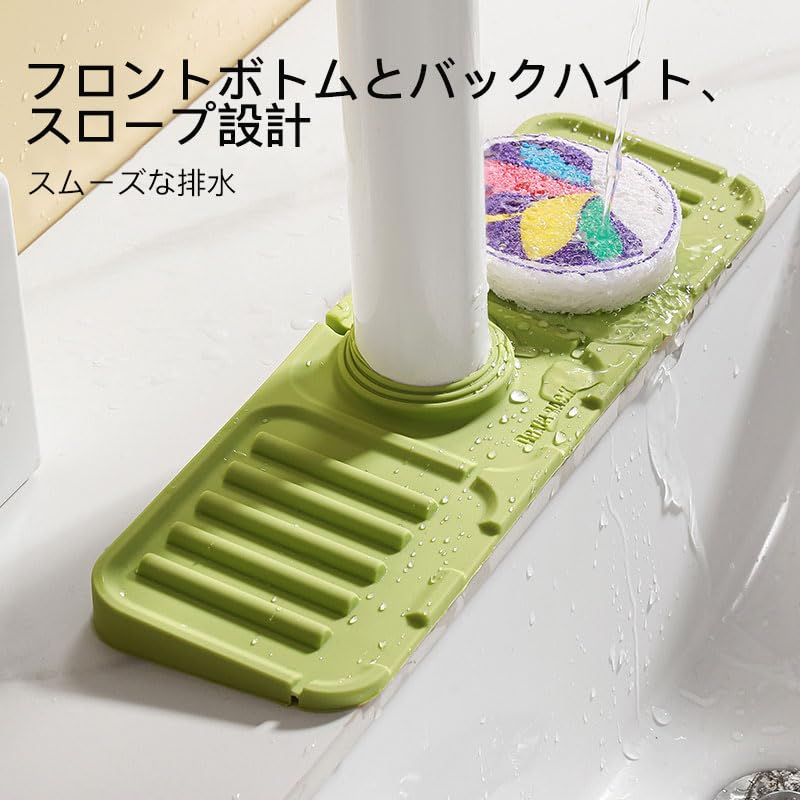 シリコーン タップ水切りマット小型の良いフィット 32 cm ※ 10 cm 斜め排水口キッチン浴室洗面防水マット蛇口スプレー速乾防カビ乾燥折り畳み式滑り止め防水シリコーン水切りマット (緑, 32cm*10cm)