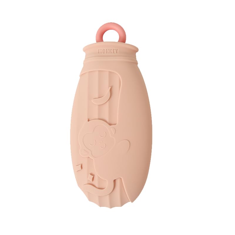 湯たんぽ シリコン製 でゆたぽん ミニ 電子レンジ対応 可愛いモンキーデザイン 蓋付き 携帯用 23.5×11×3cm (M-ピンク)