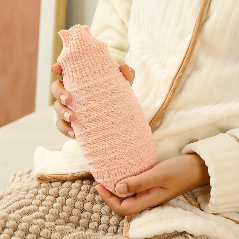 BAOYOUNI 湯たんぽ ゆたんぽ シリコン製 ニットカバー付き 携帯便利 ミニサイズ 冷え対策 保温 グッズ 冷熱両用 電子レンジでもOK 暖かい キュート おしゃれ 秋冬対策 エコ 節電 保暖 温度長持ち 肩足腹対応 生理期 体にやさしい 手足兼用 (ピンク)