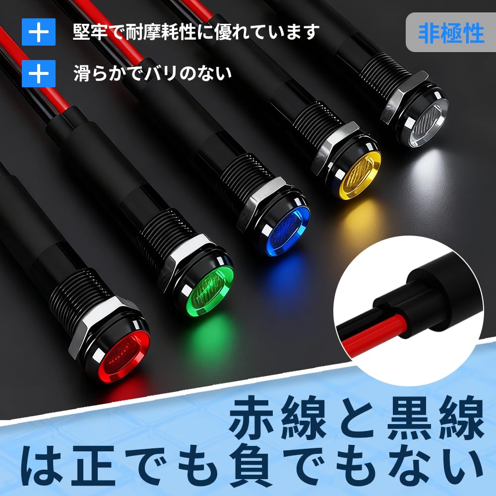 自動車、トラック、船舶向けに提供する高品質な12-24V LEDライトで、車両の室内照明と信号システムをアップグレードしましょう。コンパクトでパワフルな8mm方向指示灯は、優れた視認性、耐久性、スタイルを提供するように設計されており、ダッシュボードインジケーター、方向指示灯、または室内アクセント照明として最適です。明確な信号を提供し、インテリアの美観を向上させます。 主な特徴: 広い電圧互換性:12V~24VのDC電源システムに対応し、自動車、トラック、RV、船舶、その他の車両用途に最適です。 優れた防水性能:IP67保護等級を取得し、防水・防塵性を確保。あらゆる天候条件や環境下での信頼性の高い動作を実現します。 コンパクトで省スペース設計:直径8mmのLEDは、狭いスペースやダッシュボード、コンソール、計器盤への慎重な取り付けに最適です。 簡単な取り付け:プラグアンドプレイ設定用の事前接続済み配線と非極性配線システムを装備。基本的な工具で車両の電気システムに簡単に接続できます。 明るく効率的な照明:高輝度LEDチップが最小限の電力消費で明瞭な信号を提供し、車両バッテリーの負荷を軽減します。 耐久性構造:耐熱性・耐腐食性素材を採用し、高温や湿潤環境下でも長寿命性能を発揮します。 仕様: カラー:5色展開(赤・緑・黄・青・白) 直径:8mm 電圧:12-24V DC 防水等級:IP67 数量:1袋5個入り 付属品:配線済みリード線(接続用) 車内装飾の強化、追加信号灯による安全性の向上、船舶やトラックのカスタマイズなど、あらゆる用途で比類ない信頼性と性能を発揮します。機能性とスタイルの完璧な融合を今すぐ体験してください!