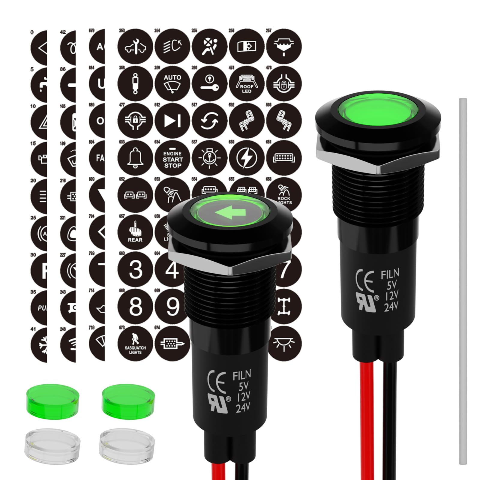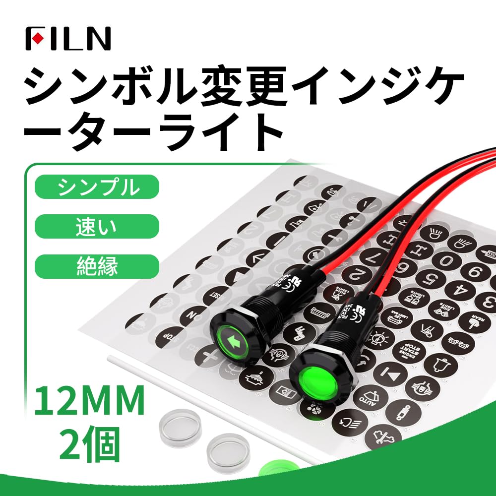 FILN 2個12mm 12-24V自動車用LEDランプ、自動車内装用小型LEDランプ、185個の交換可能符号を搭載、防水信号ランプ、ナビゲータ、ダッシュボード、指向車、電線付きトラック船(緑)