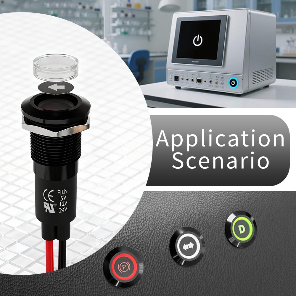 FILN 5個8mm 12-24V 表示灯LEDライト、車内用小型LEDライト、防水信号ランプ パイロットダッシュ方向指示灯 トラック・ボート用 配線付き-亜鉛アルミニウム合金(白)