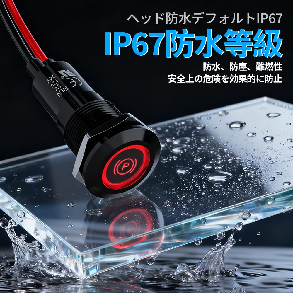 FILN 5個8mm 12-24V 表示灯LEDライト、車内用小型LEDライト、防水信号ランプ パイロットダッシュ方向指示灯 トラック・ボート用 配線付き-亜鉛アルミニウム合金(赤)