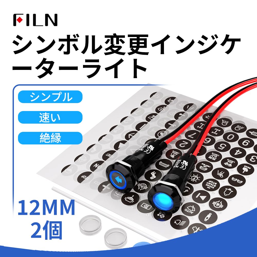 FILN 2個12mm 12-24V自動車用LEDランプ、自動車内装用小型LEDランプ、185個の交換可能符号を搭載、防水信号ランプ、ナビゲータ、ダッシュボード、指向車、電線付きトラック船(青)