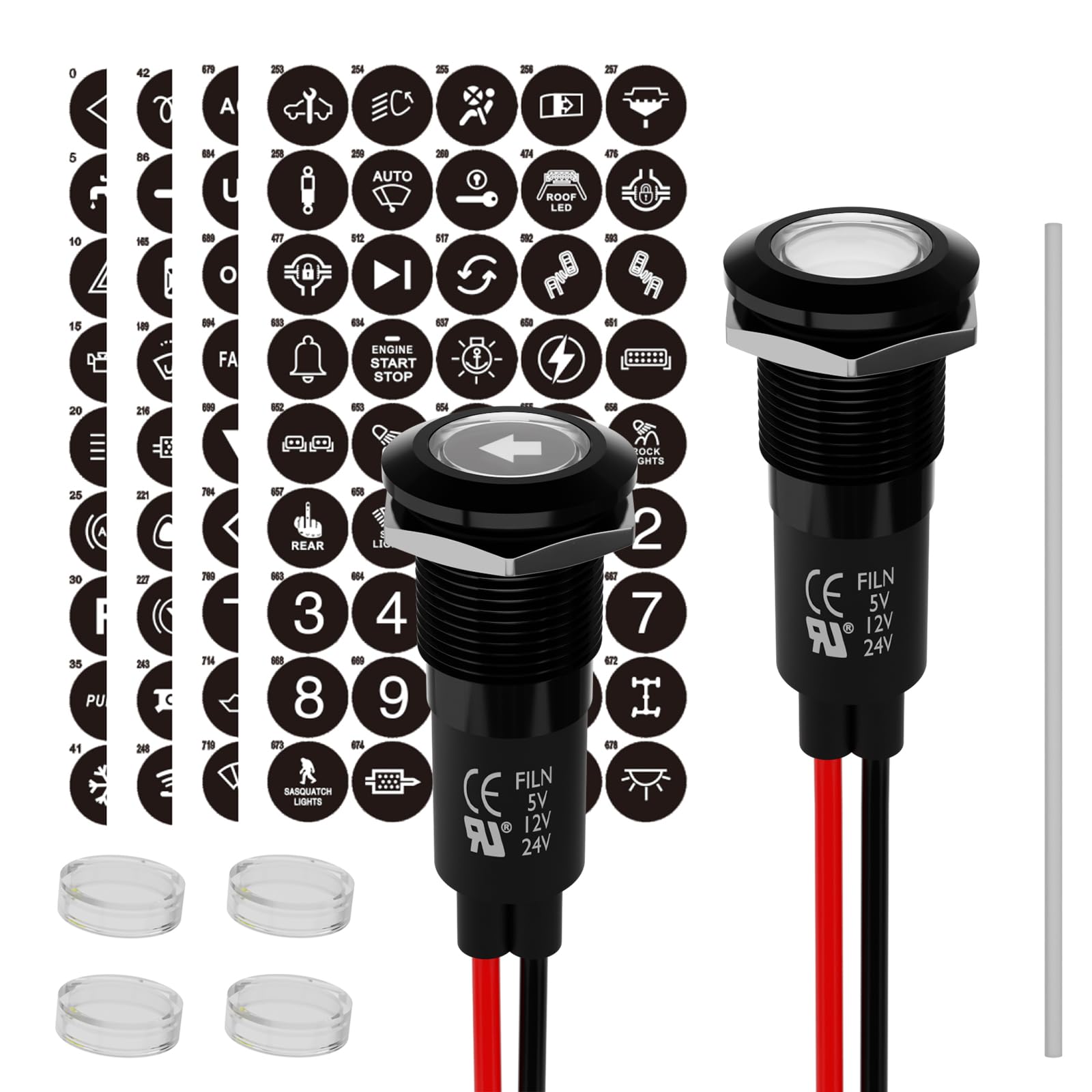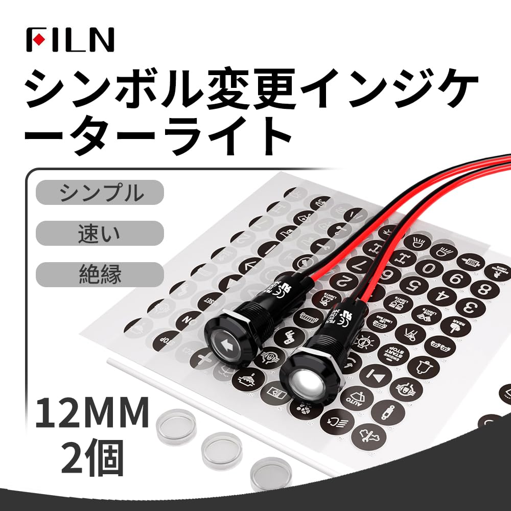 FILN 2個12mm 12-24V自動車用LEDランプ、自動車内装用小型LEDランプ、185個の交換可能符号を搭載、防水信号ランプ、ナビゲータ、ダッシュボード、指向車、電線付きトラック船(白)