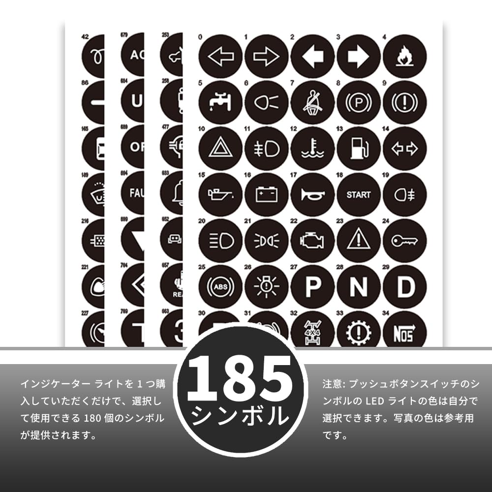 自動車、トラック、船舶に提供する高品質な12~24 V LEDライトを使用して、車両内部の照明と信号システムをアップグレードします。これらのコンパクトで強力な8 MM方向指示灯は、優れた可視性、耐久性、スタイルを提供することを目的としています。これらの多機能LEDランプには185個の交換可能なシンボルが搭載されており、ダッシュボードLED、LED、または内部重点照明として使用するのに最適で、明瞭な方向信号を提供し、内部の美しさを高めることができます。 主な特徴: 185シンボルデザイン:185個の交換可能シンボルを備え、応用シーンとロゴに応じて自由にマッチングと選択ができ、DIY愛好家の第一選択となっている 広電圧互換性:12 Vから24 Vの直流電源システムと互換性があり、これらのLEDランプを自動車、トラック、自動車、船舶、その他の自動車応用の理想的な選択にする。 卓越した防水性能:これらのランプの防護レベルはIP 67で、完全に防水防塵して、各種の天気条件と環境の下で確実に運行することを確保する。 コンパクトで省スペースな設計:これらのLEDは直径8 MMで、コンパクトなスペースとダッシュボード、コンソール、またはダッシュボードへの慎重な取り付けに最適です。 容易な設置:簡単なプラグアンドプレイ設定のための事前接続配線、非極性配線システムを含む。基本的なツールを使用すると、車両の電気システムに簡単に接続できます。 明るくて効率的な照明:高輝度LEDチップは最小電力を消費すると同時に、明瞭で明るい信号を提供し、車両電池の負荷を減らす。 耐久性構造:耐熱性と耐食性材料で作られ、高温または湿気条件下で耐久性がある。 多目的:方向指示灯、操舵信号警報、点火状態灯、警告灯、インテリア照明に最適。 仕様: カラー:5色から選択可能:赤、緑、黄、青、白 直径:8 MM 電圧:12-24 V直流 防水レベル:IP 67 数量:1パックあたり2点 含む:接続を容易にするためのプレ配線引出線 これらのLEDライトは、自動車の内装を強化したり、追加の信号機で安全性を高めたり、船やトラックをカスタマイズしたりすることで、比類のない信頼性と性能を提供します。すぐに注文して、機能とスタイルの完璧な融合を体験してください!