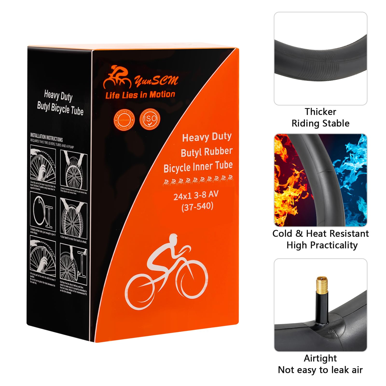 YunSCM 2本,24 1 3/8 チューブ 肉厚,米式バルブ32mm,自転車 チューブ 24 1 3/8 37-540,適用 24x1 3/8 車椅子、ロードバイク、電動自転車