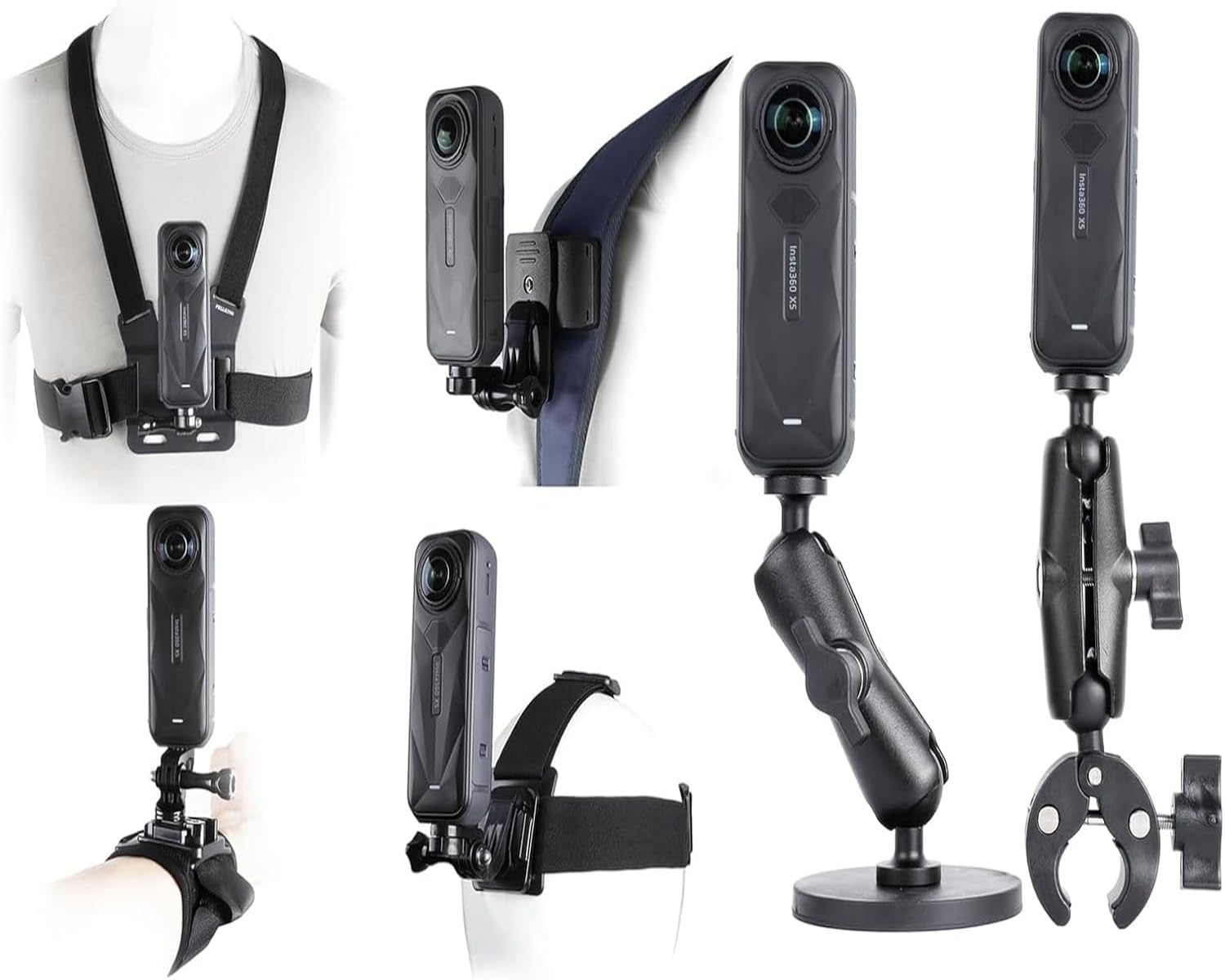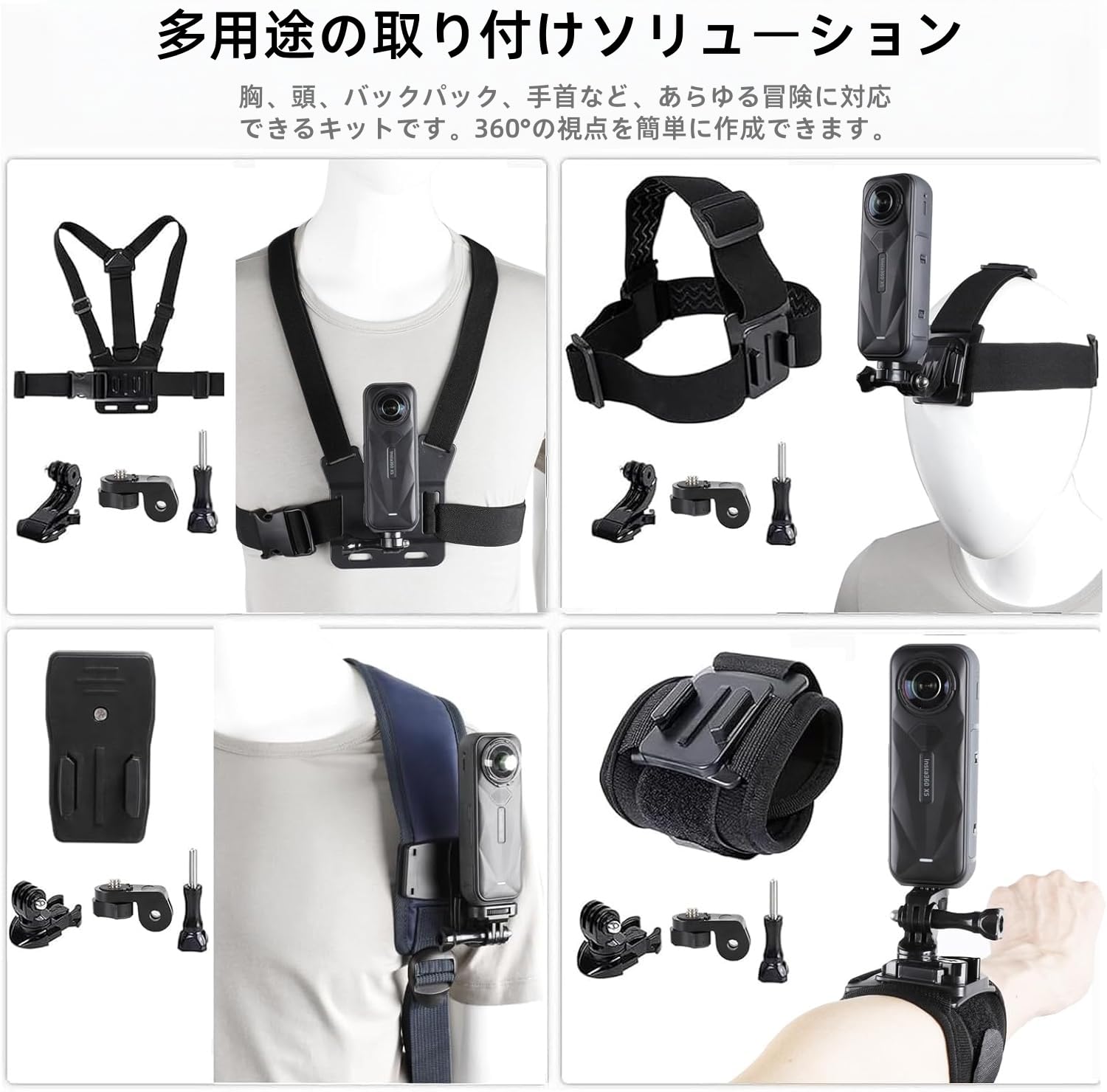Insta 360 X5 用アクセサリーキット チェストマウント/バックパックマウント/ヘッドストラップマウントセット バックパック/ヘッドストラップマウントバンドル Insta360 X5/X4/X3/Ace Pro/Go3S用 GoPro Hero 13,DJI Osmo 360、DJIアクション5に対応