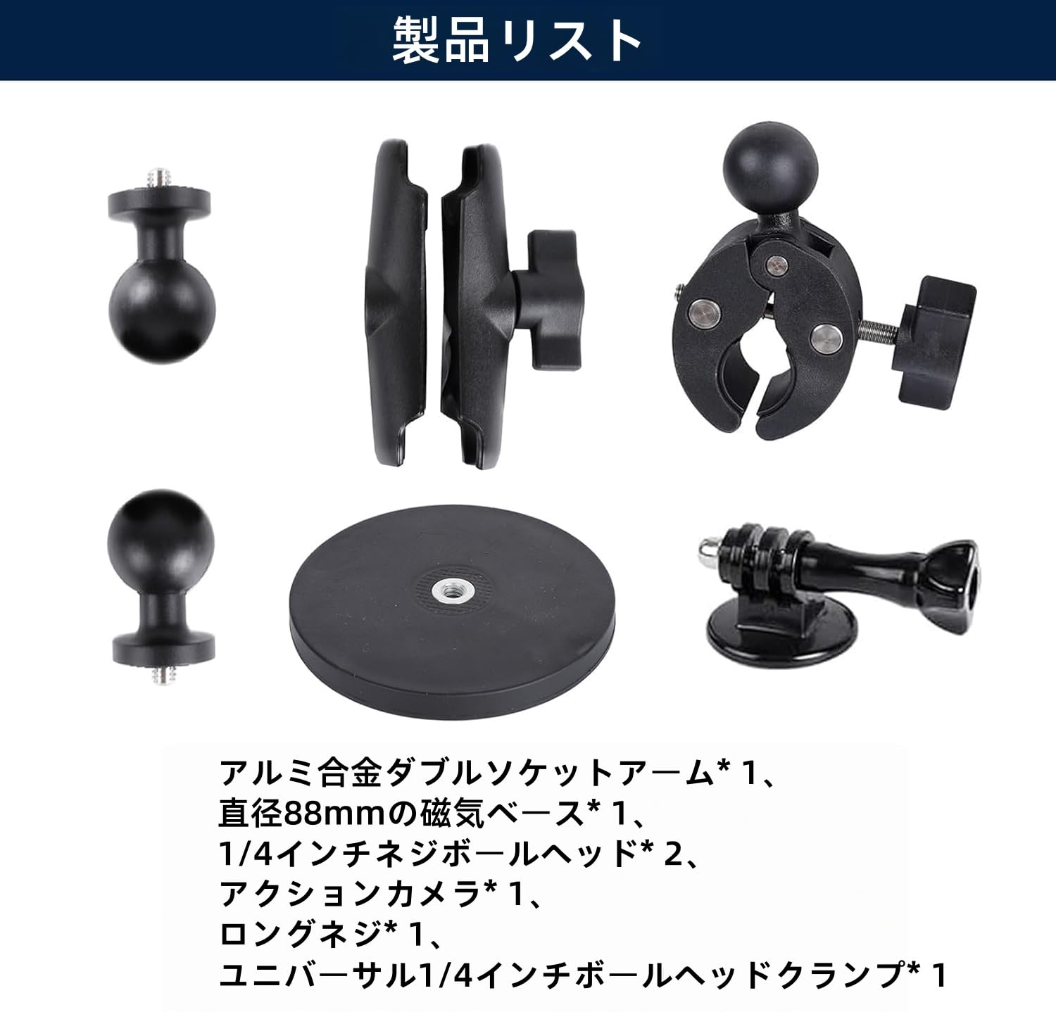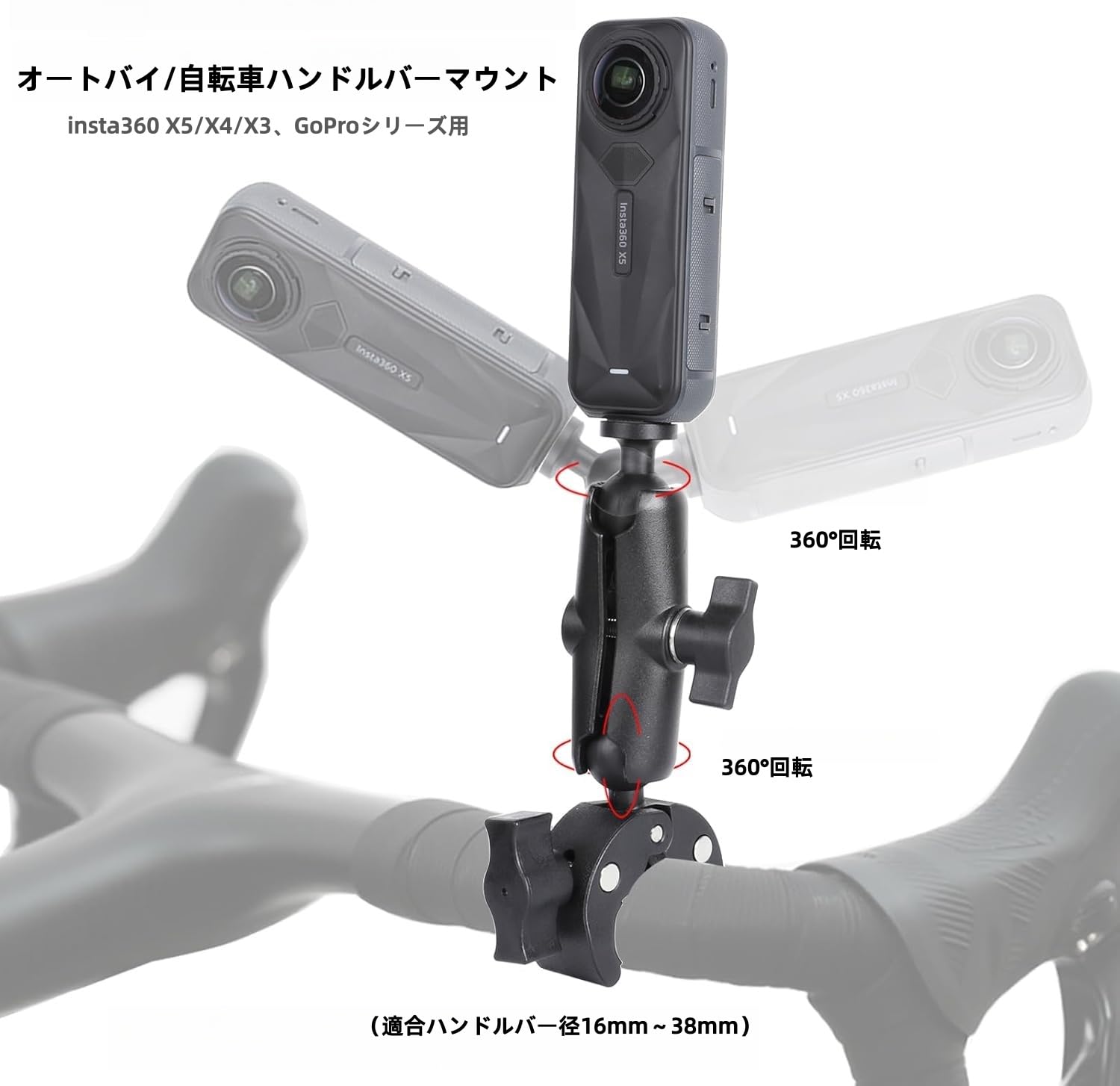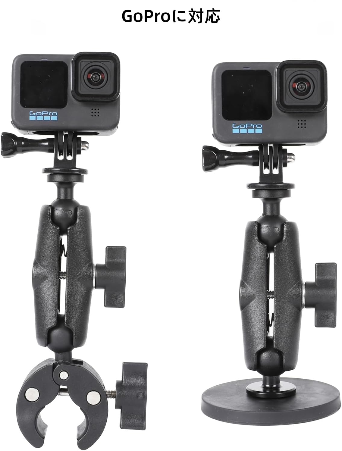 AuyKoo 最新型 パイプクランプ オートバイ・バイク・自転車 ハンドルマウント クランプマウント アクションカメラホルダー ボール雲台 1/4アダプター付き 軽量 360度回転式 GoPro Hero 11/10/9/8/7/6/5/4/3/GoPro MAX/Insta360/AKASO/XiaoYi/Sonyなどに適用 アクセサリー