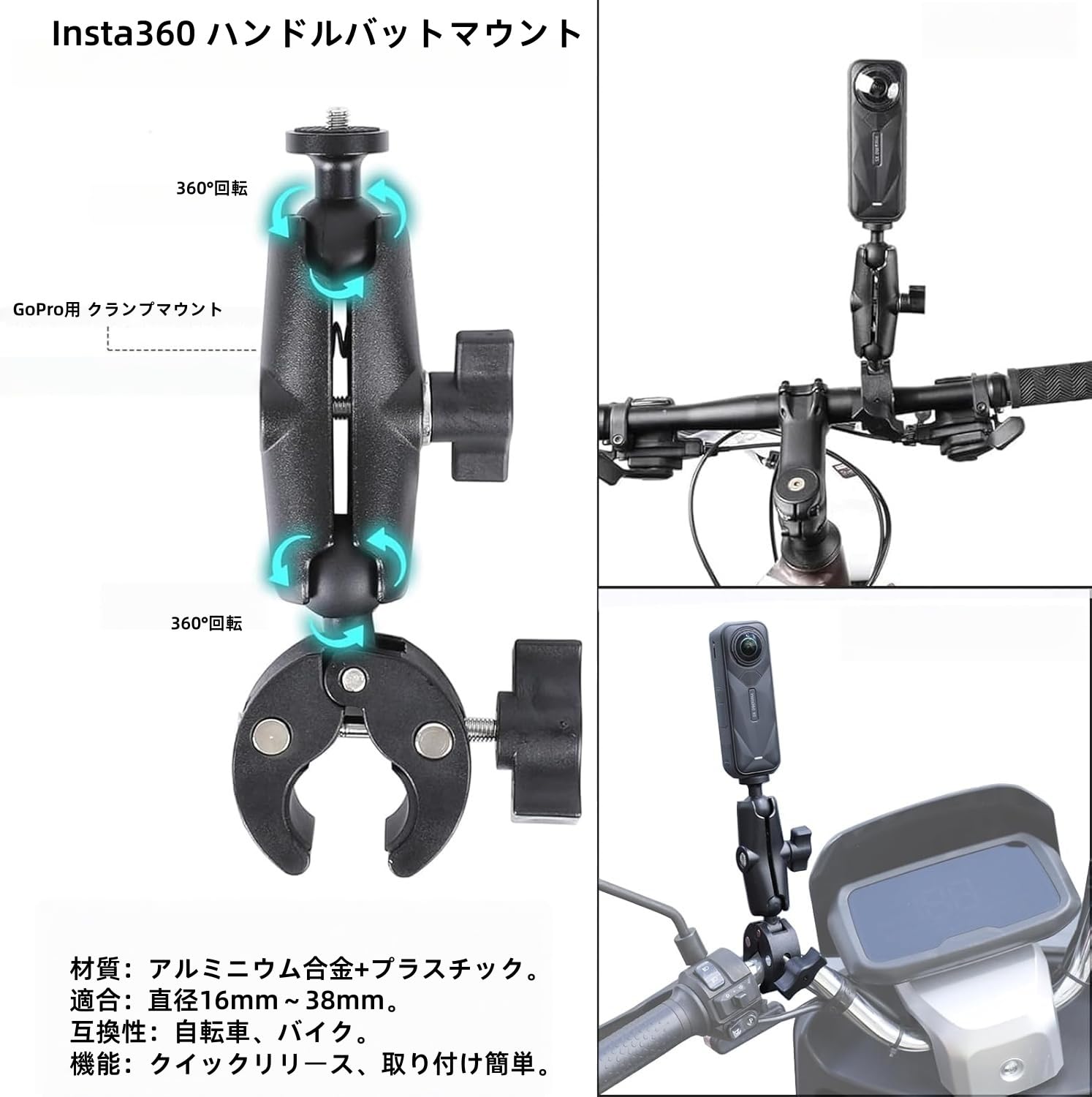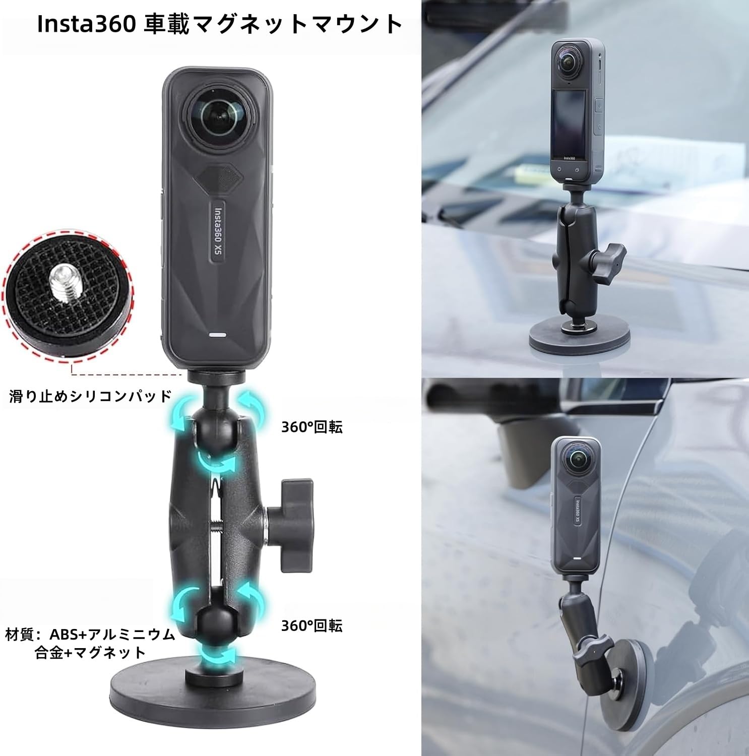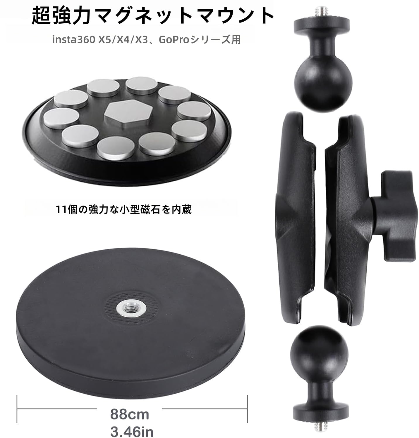 insta360 x5用 クランプマウント アルミニウム合金 360°回転 車載マグネット 88mmマグネットマウント自転車 バイク マウント GoPro用アクセサリー 耐摩耗滑り止め アクションカメラ Hero 13 12 11 10 9 Insta360 X5 X4 X3 Ace Pro DJI Osmo 360 Action 5 Pro 4/デジタルカメラ/ビデオカメラに対応