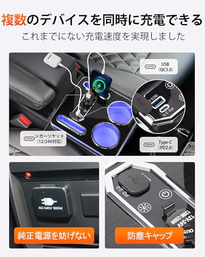 LIMSTYLE 新型 ヴォクシー ノア 90系 コンソールボックス VOXY NOAH 4代目 R90W アームレスト 肘置き 急速充電 Type-C QC3.0 USBポート 呼吸ランプ 7色変換 ヒューズ線 ハイブリッド 足踏み式サイドブレーキ車用 多機能 ドリンクホルダー カップホルダー 内装パーツ 大容量収納 (ブラック)