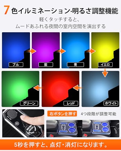 CEMOFE デリカd5 コンソールボックス センターコンソール アームレスト ドリンクホルダー 7色LEDライト 明るさ調整機能 USB&Type-C充電対応 車 収納ボックス 小物入れ 肘掛け DELICA D:5 専用コンソール アクセサリー カスタムパーツ 装着簡単 前後期適用 2007年1月~