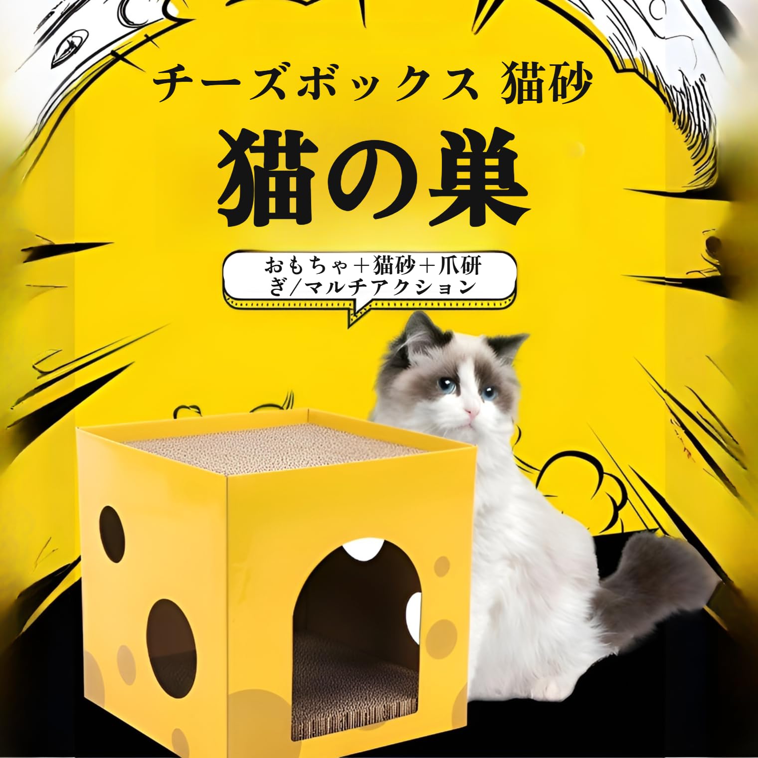 pecute 猫用段ボール交換可能、ペキュート爪研ぎ器 波形セット、爪研ぎ器 ボックスベッド付き 耐久性