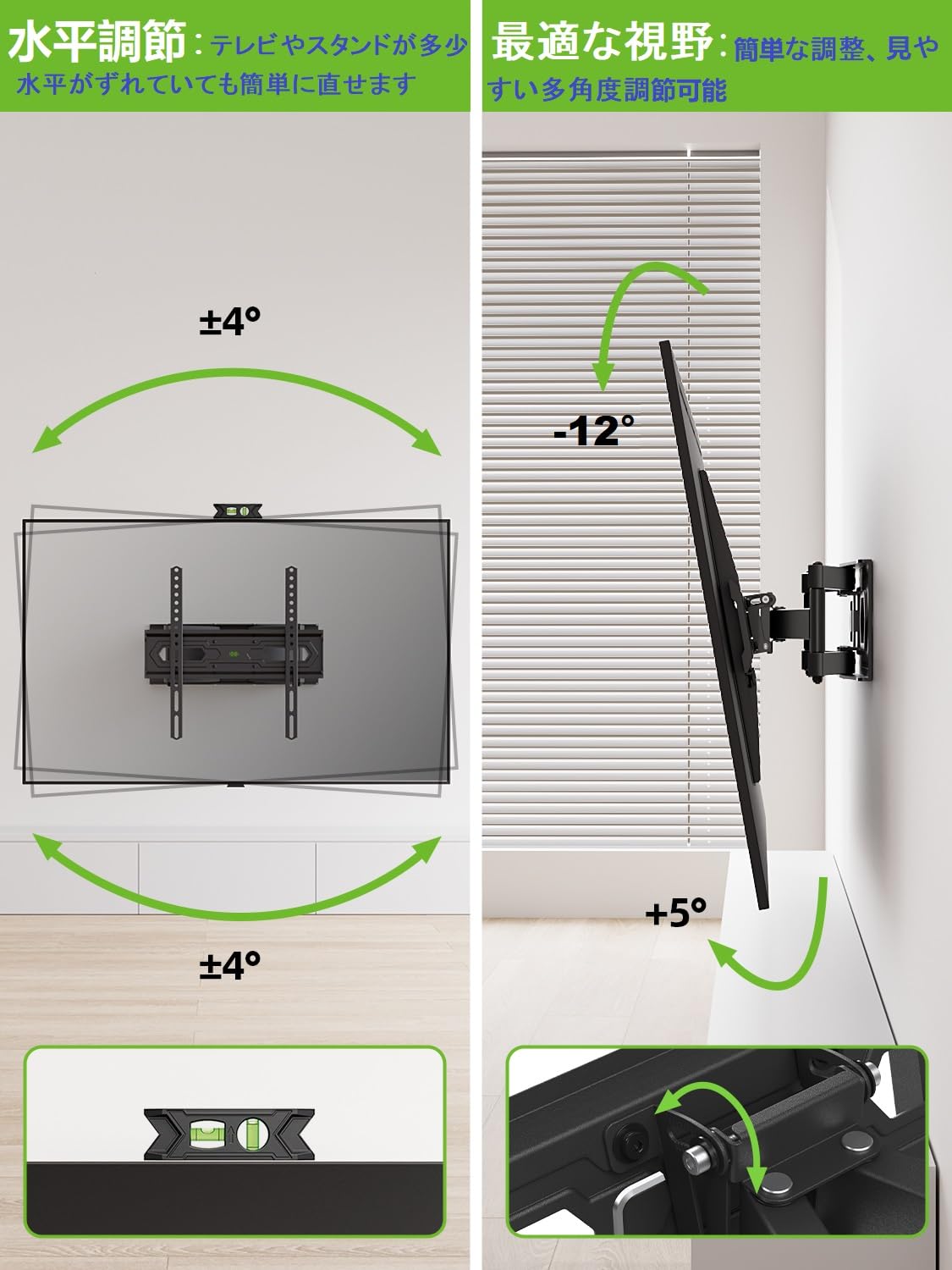 USX MOUNT 壁掛けテレビ金具 37~82インチ対応 テレビ壁掛け金具 テレビ 壁掛け 耐荷重60kg テレビかべかけ金具 tv壁掛け金具 軽量薄型 LCD LED 液晶ティルト式 テレビ 上下調節式可傾式壁掛けテレビ金具てれび 壁掛け VESA最大対応 600x400mm