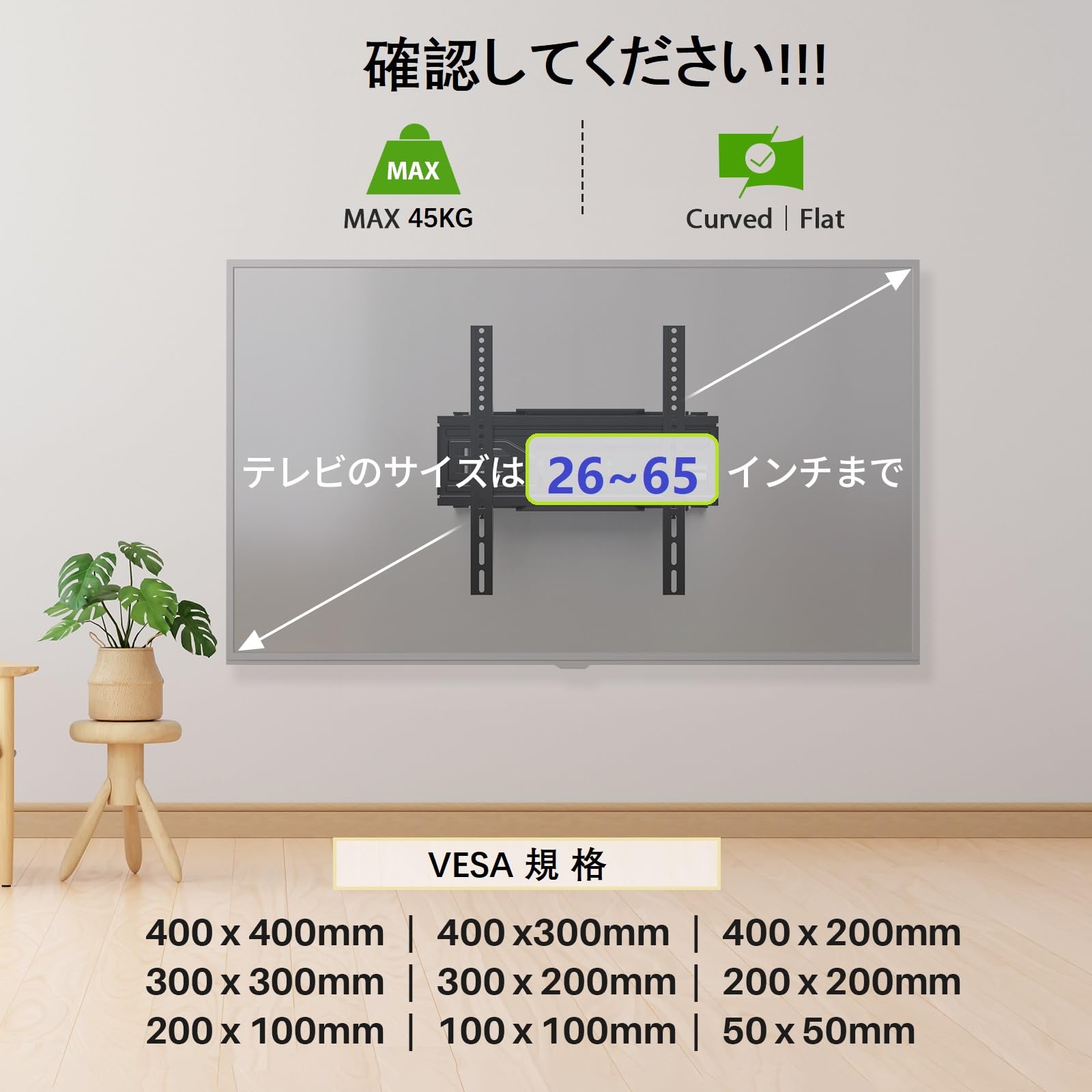 USX MOUNT モニター壁掛け金具 ディスプレイ壁掛け 10-26インチ対応 壁掛け金具 テレビ 上下左右角度調節 小型 TV かべかけ 耐荷重10kg 最大VESA 100×100mm テレビ壁掛け金具 軽量 テレビ かべかけ 汎用