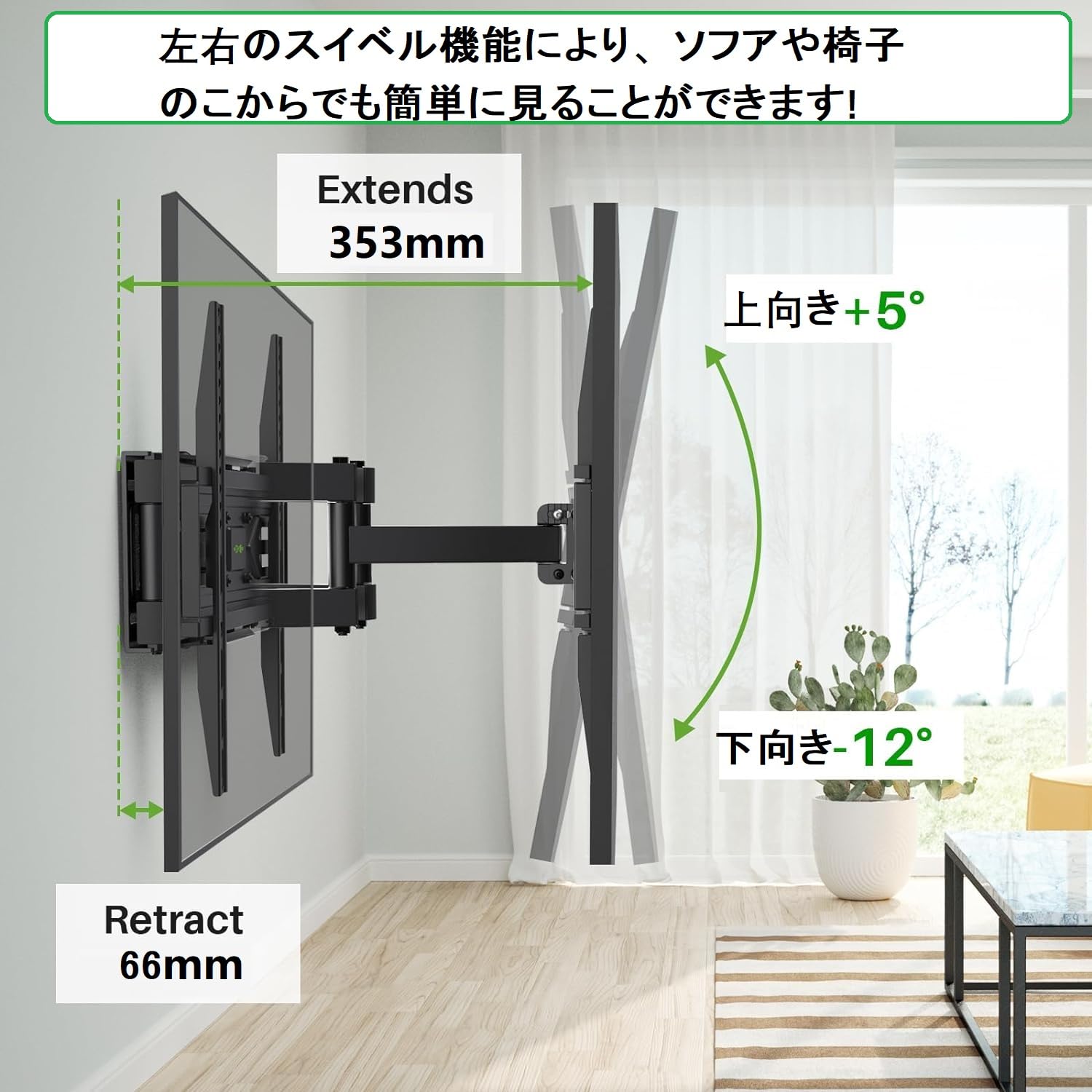 USX MOUNT テレビ壁掛け金具 大型37-82インチ LCD/LED 対応 フルモーション式 壁掛けテレビ金具 アーム式 耐荷重60kg tv かべかけ アーム 可動式 用前後、左右、上下多角度調節可能 tv壁掛け金具 頑丈な金属 最大VESA 600x400mm Swivel TV Wall Mount