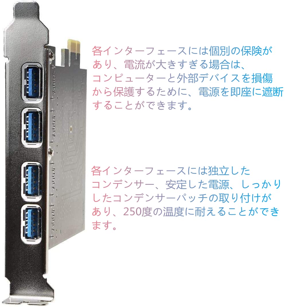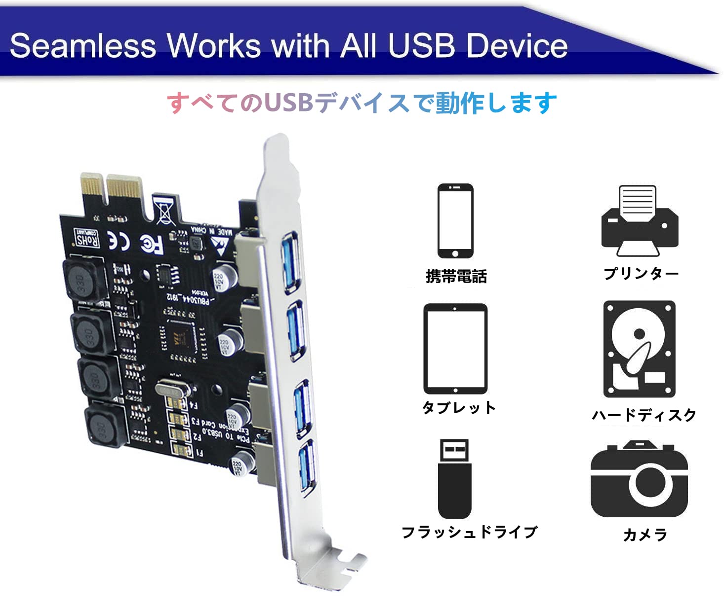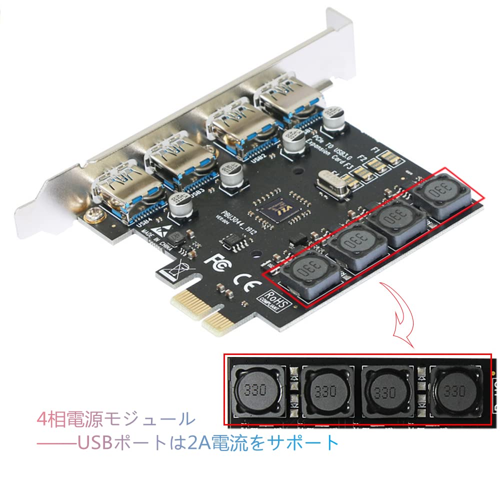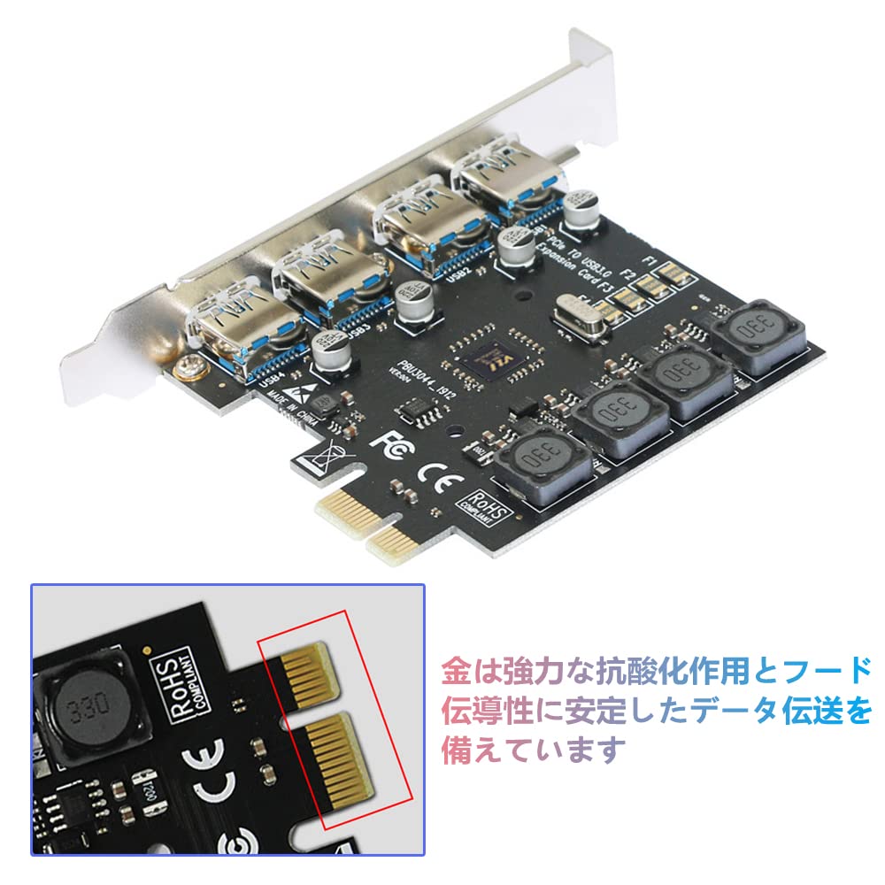 IDEAPRO USB3.0増設ボード インターフェースボード 4ポート 補助電源不要 PCI-Eカード PCI Express x1 5Gbps高速伝送