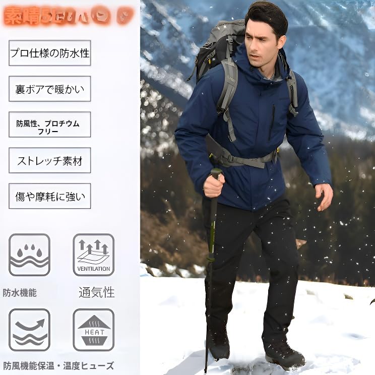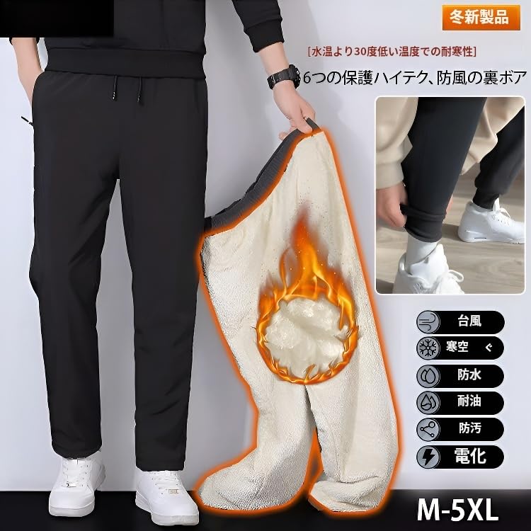 [koulaya] 防寒ズボン メンズ 裏起毛 イージーパンツ 裏ボア フリース付き 暖かい 中綿 スウェットパンツメンズイージーパンツ 暖パン カジュアルズボンス 大きいサイズ 調整紐 厚手 防風 防水 普段着 登山 アウトドア ルームウェア