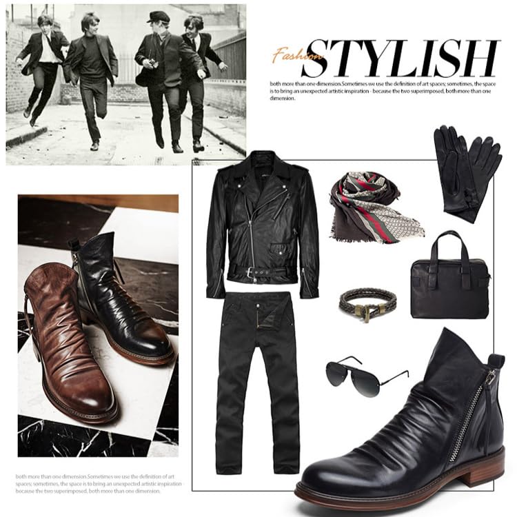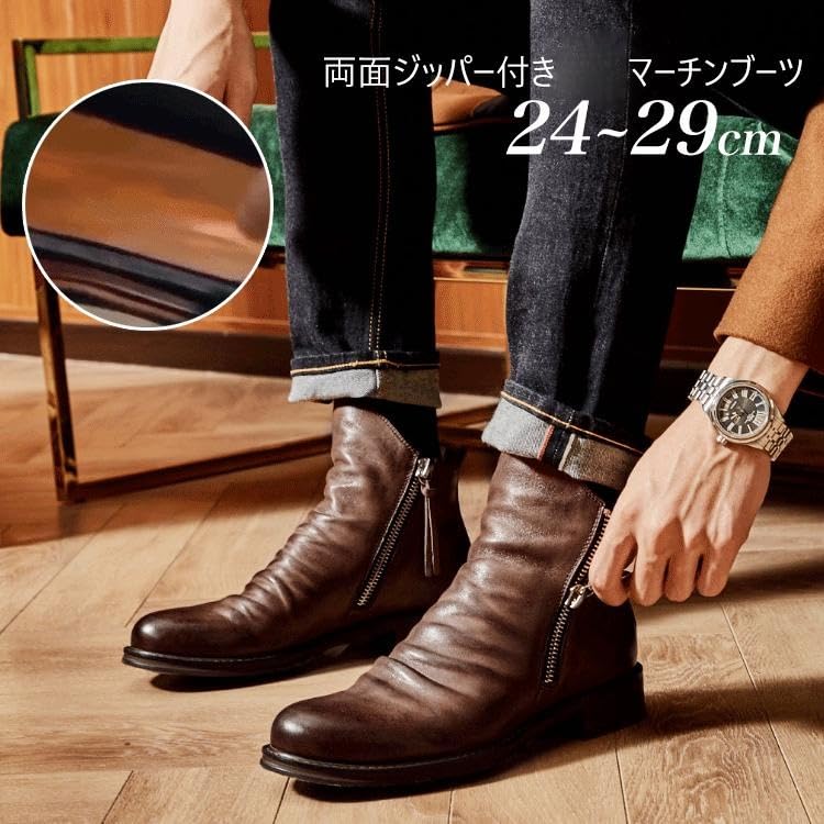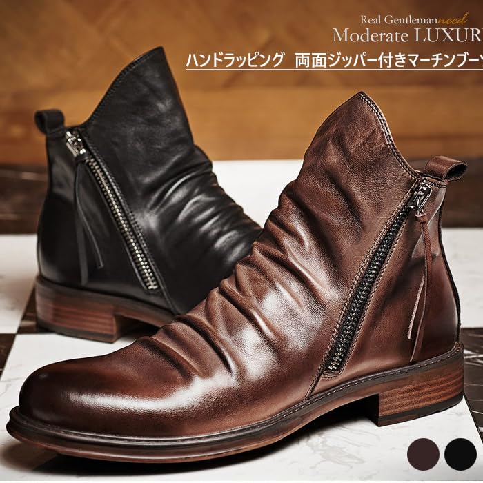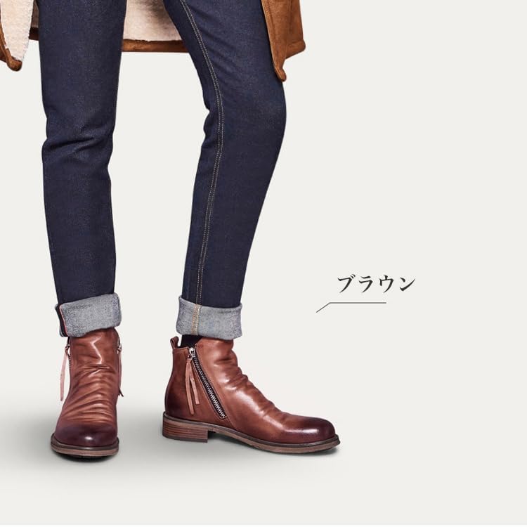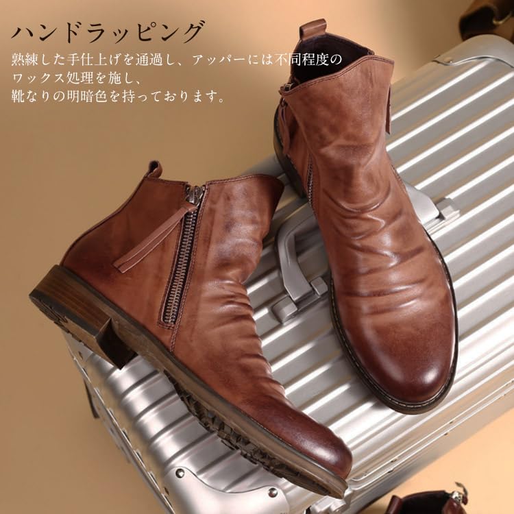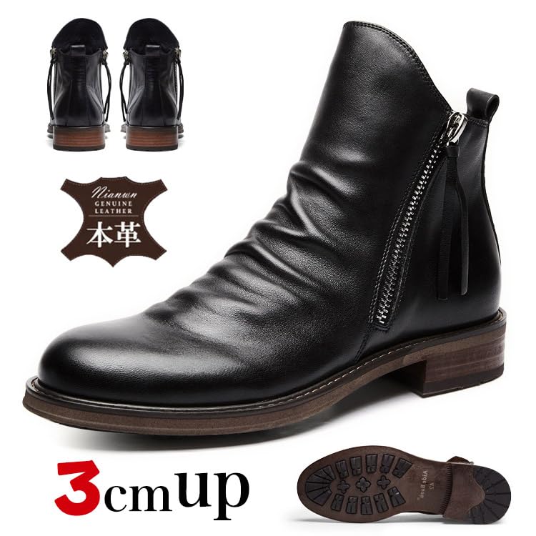 [Firmiarii] ブーツ メンズ エンジニアブーツ 防水 革靴 3cmUP ドレープ ショートブーツ サイドジップ チェルシーブーツ おしゃれ 歩きやすい 防滑 軽量 合皮 カジュアル ワークブーツ 大きいサイズ バイク 通勤 日常着