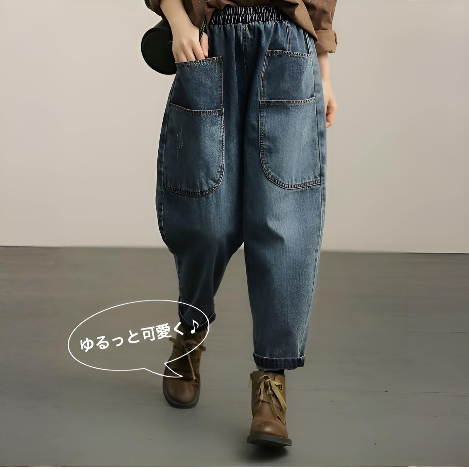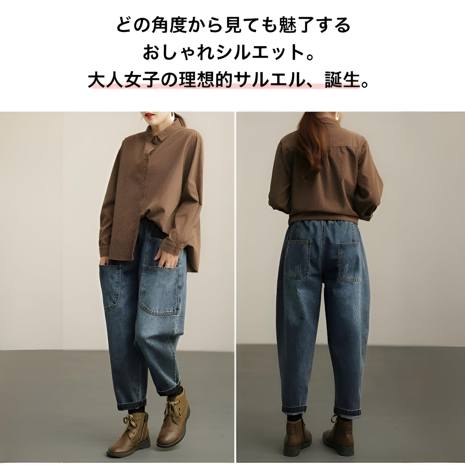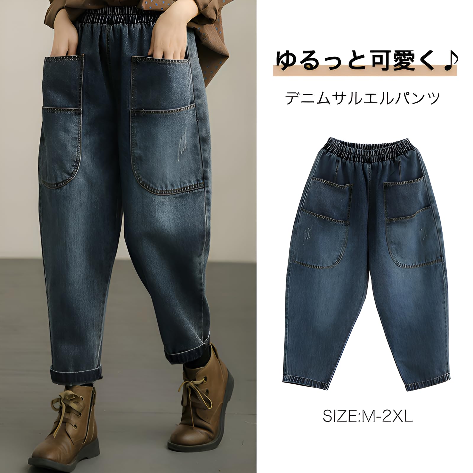 [qiukala] 岡山デニムサルエルパンツ 通気性 蒸れない サラサラ快適 体型カバー 美脚 褪色しない シワ防止 カジュアル ファンション で 汗がこもらず 脚にくっつかず パジャマよりも快適です