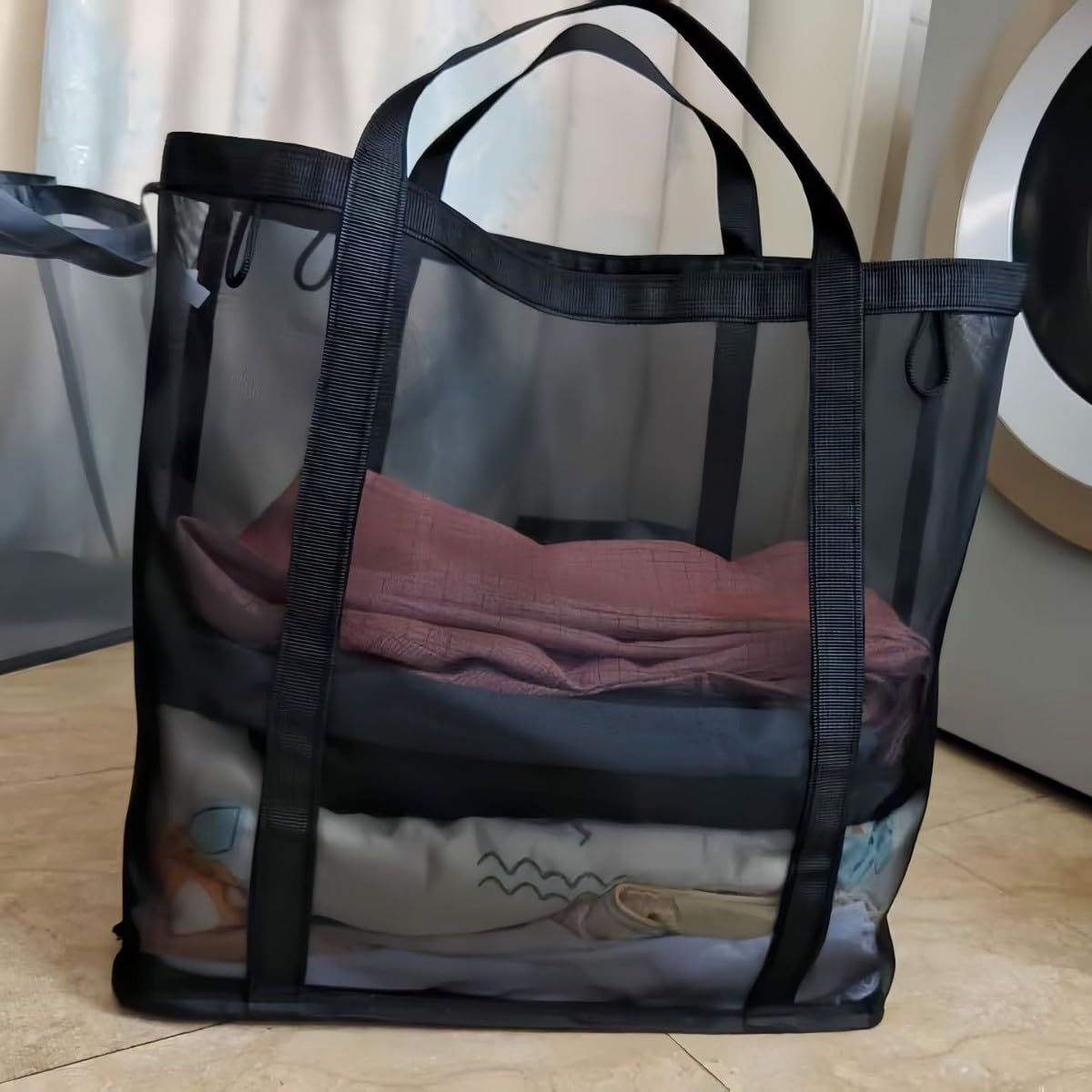 Vixplorn ランドリーバッグ 大容量 メッシュ 高通気性 ランドリーバスケット 折りたたみ 取っ手 フック付き 壁掛け可能 コンパクト 軽量 洗濯物入れ 洗濯物カゴ トイレ バスルーム 寝室 脱衣所 リビング (ブラック)