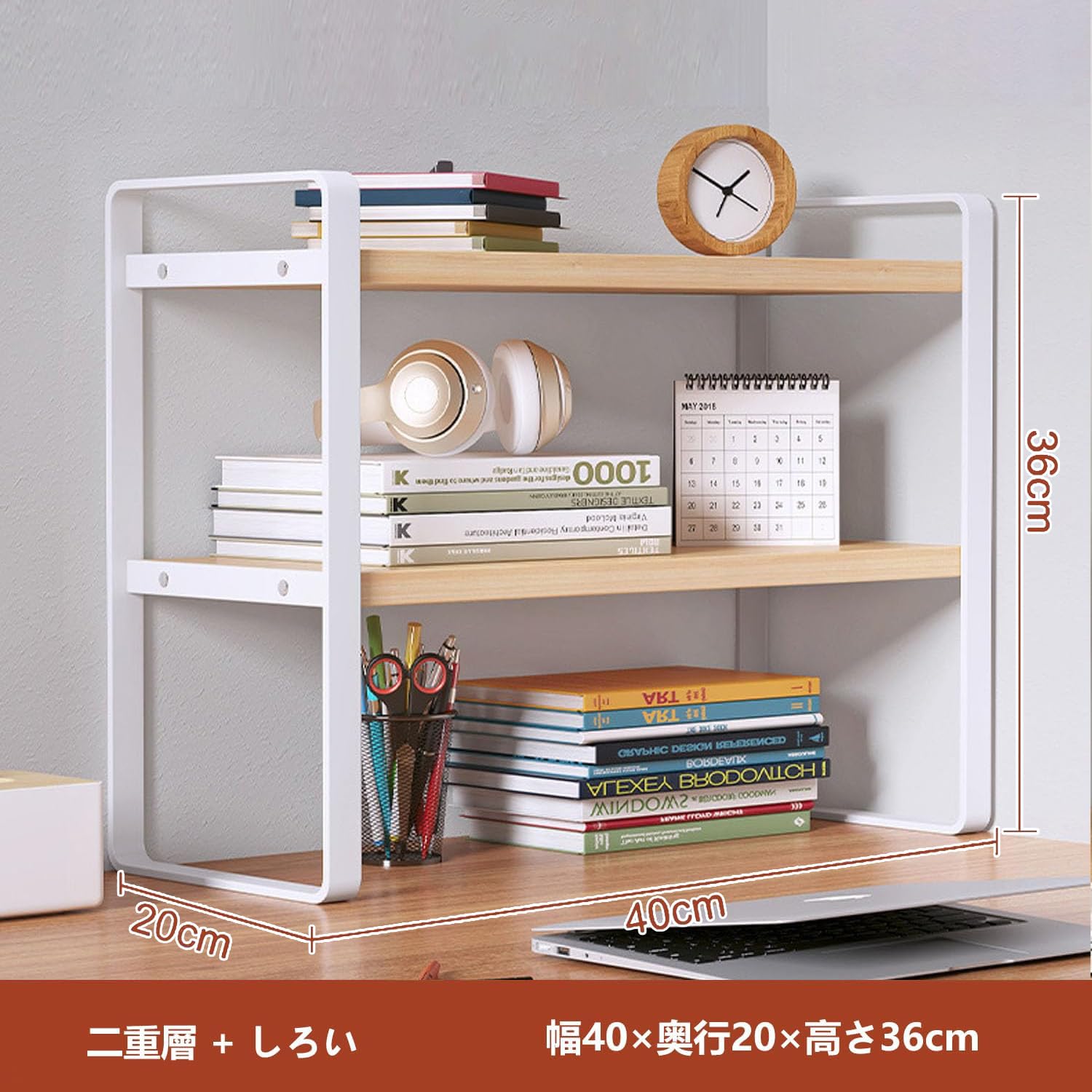 ブランデスク上収納ラック 2段 卓上本棚 机上 本立て デスク上置き棚 書類整理 小物収納