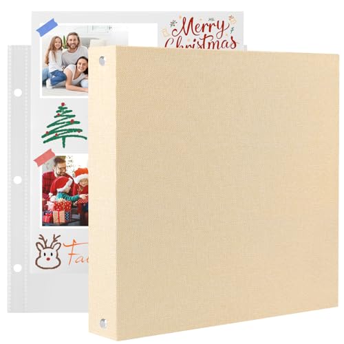 AIOR 手作りアルバム スクラップブック 30x30cm、ポケット20個付き、白台紙 20 枚/40 ページ DIY フォトアルバム リネンカバー 写真集 子供 成長記録 記念日 誕生日や結婚式用 (ベージュ)