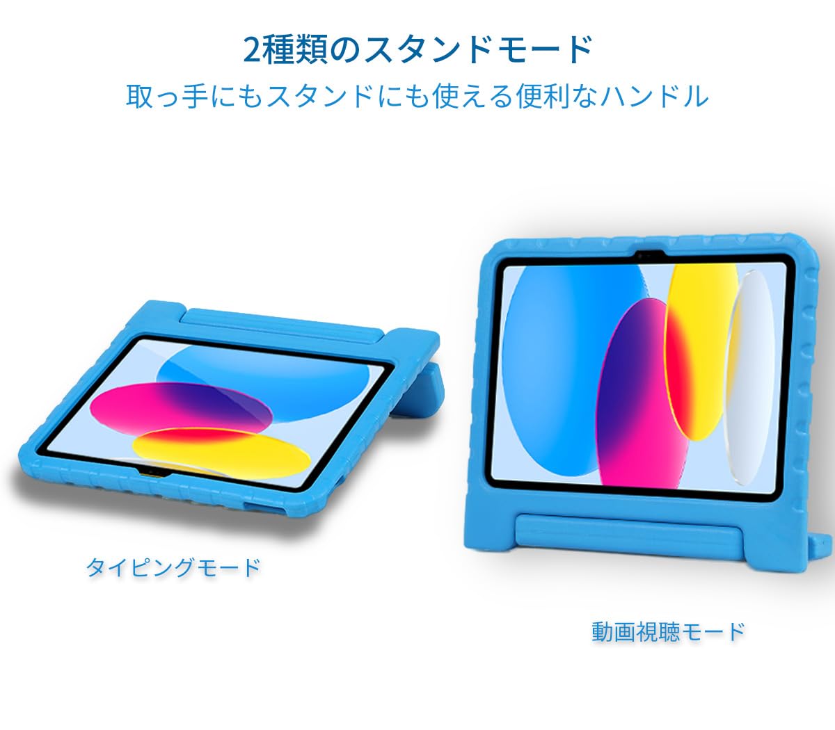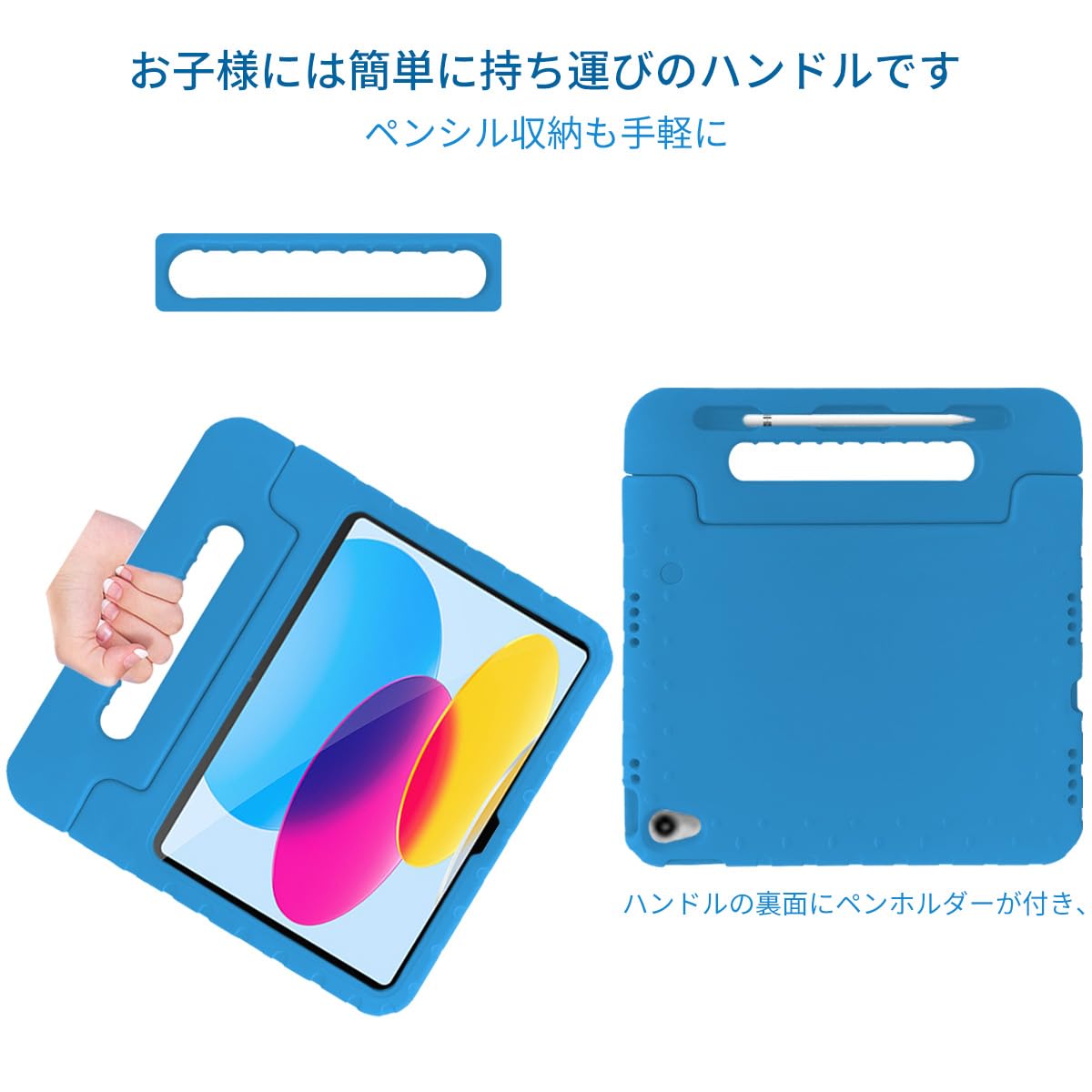 iPad 11世代 ケース iPad 10世代 2025 11インチ 2022 10.9インチ 子ども用 キッズ 耐衝撃 軽量 スタンド機能 EVA ペン収納 ペンホルダー ハンドル付き 保護 カバー (ブル-)