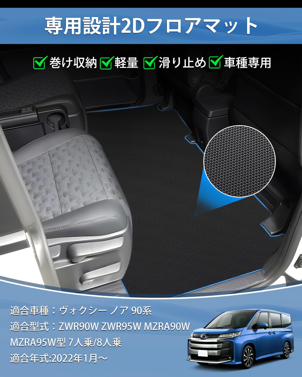 TELLIKA ヴォクシー ノア 90系 フロアマット セカンドラグマット NOAH VOXY 90系 フロアマット 3D 7人乗り/8人乗り用 2列目レール隠し 立体構造 セカンド シート TPE 水洗い可能 防水 耐汚れ カスタムパーツ 車種専用設計 取付簡単 保護パーツ カー用品 アクセサリー 2022年1月-現行